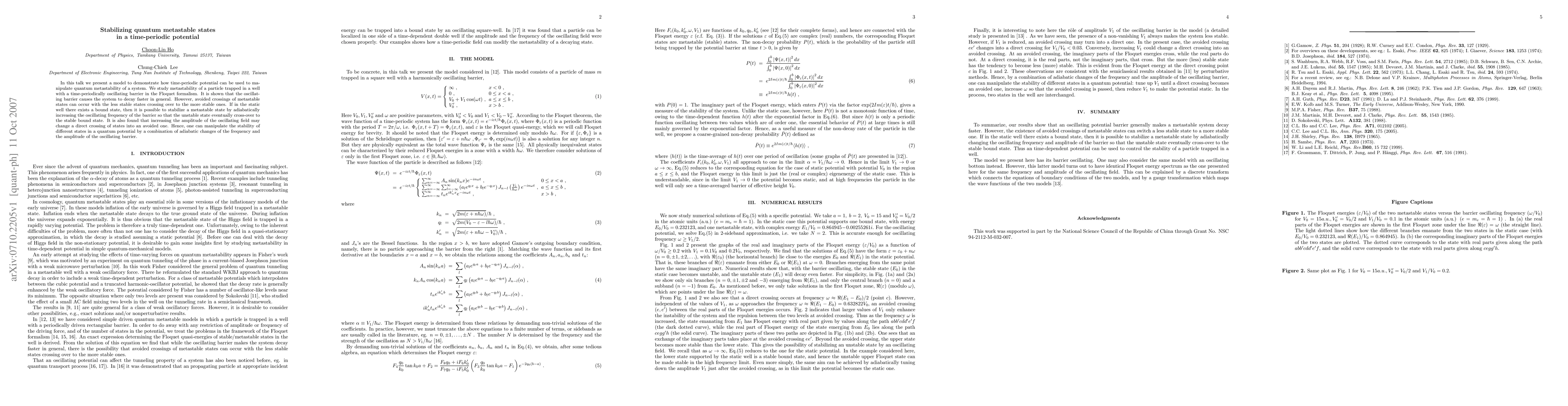 Researchers found that a time-periodic potential can stabilize quantum metastable states in certain conditions, such as when the unstable state crosses over to a more stable bound state by increasing the oscillating frequency or amplitude.