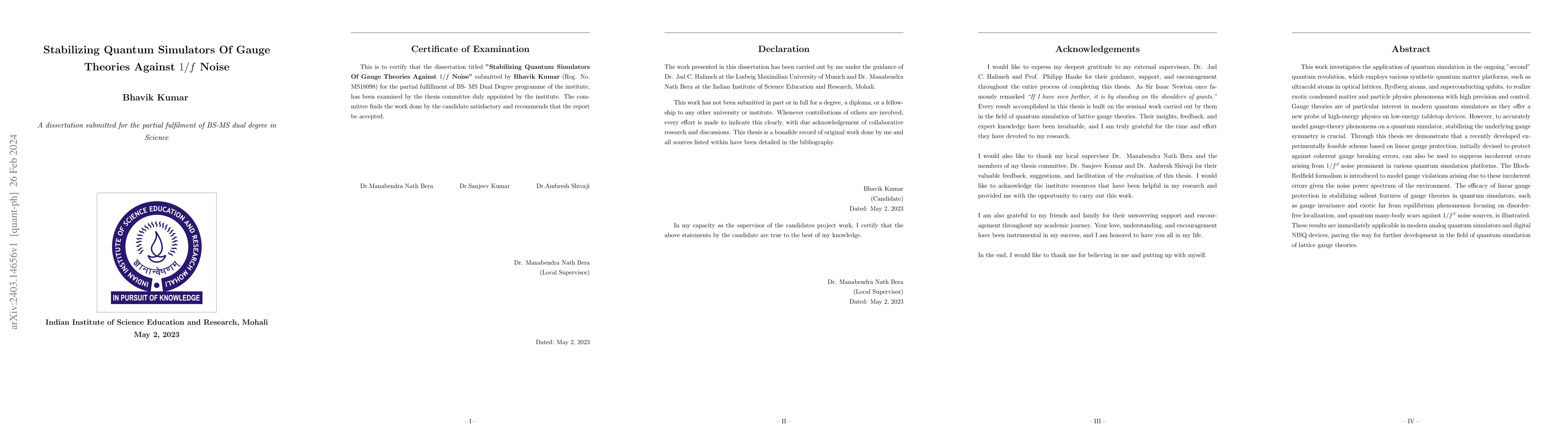 This work investigates the application of quantum simulation in the ongoing "second" quantum revolution, which employs various synthetic quantum matter platforms, such as ultracold atoms in optical lattices, Rydberg atoms, and superconducting qubits, to realize exotic condensed matter and particle physics phenomena with high precision and control. Gauge theories are of particular interest in modern quantum simulators as they offer a new probe of high-energy physics on low-energy tabletop devices. However, to accurately model gauge-theory phenomena on a quantum simulator, stabilizing the underlying gauge symmetry is crucial. Through this thesis we demonstrate that a recently developed experimentally feasible scheme based on linear gauge protection, initially devised to protect against coherent gauge breaking errors, can also be used to suppress incoherent errors arising from $1/f^{\beta}$ noise prominent in various quantum simulation platforms. The Bloch-Redfield formalism is introduced to model gauge violations arising due to these incoherent errors given the noise power spectrum of the environment. The efficacy of linear gauge protection in stabilizing salient features of gauge theories in quantum simulators, such as gauge invariance and exotic far from equilibrium phenomenon focusing on disorder-free localization, and quantum many-body scars against $1/f^{\beta}$ noise sources, is illustrated. These results are immediately applicable in modern analog quantum simulators and digital NISQ devices, paving the way for further development in the field of quantum simulation of lattice gauge theories.