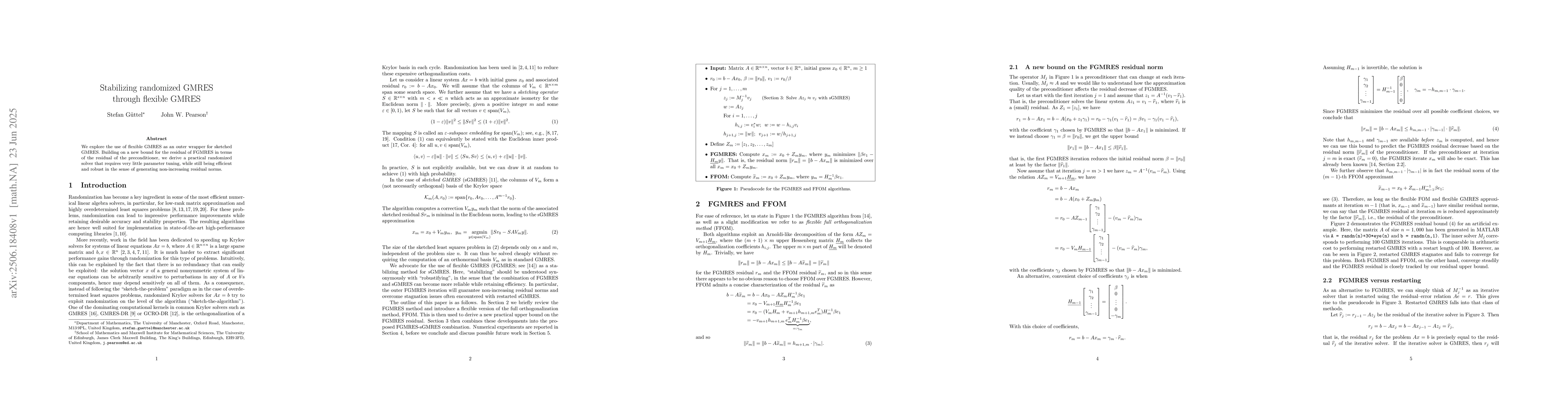 We explore the use of flexible GMRES as an outer wrapper for sketched GMRES. Building on a new bound for the residual of FGMRES in terms of the residual of the preconditioner, we derive a practical randomized solver that requires very little parameter tuning, while still being efficient and robust in the sense of generating non-increasing residual norms.