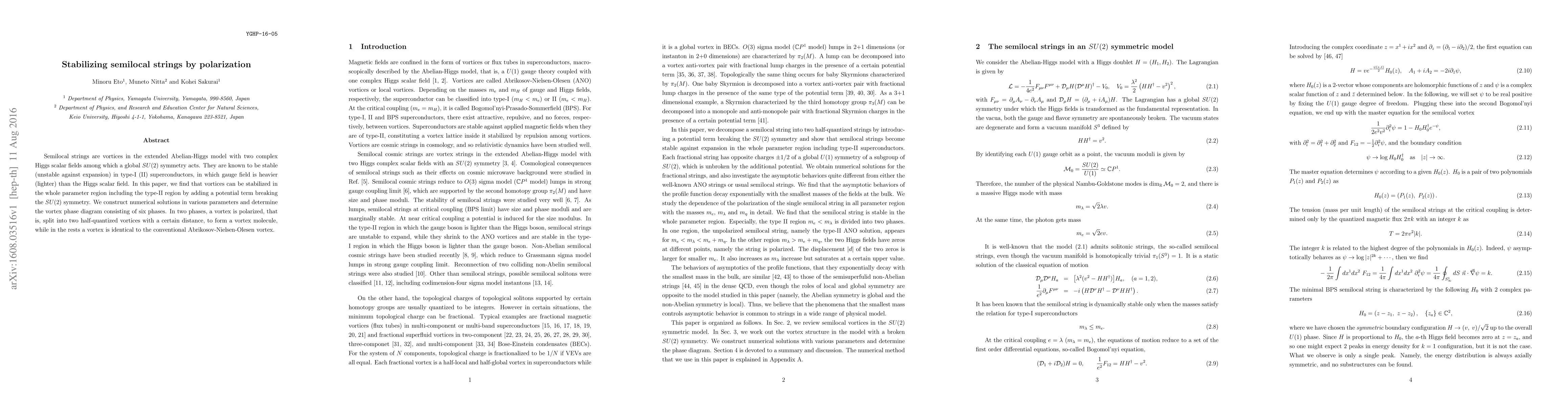 This paper investigates the stabilization of semilocal strings in the Abelian-Higgs model by introducing a potential term that breaks the $SU(2)$ symmetry, leading to six distinct vortex phases. In two phases, vortices split into half-quantized molecules, while in others, they behave as conventional Abrikosov-Nielsen-Olesen vortices.