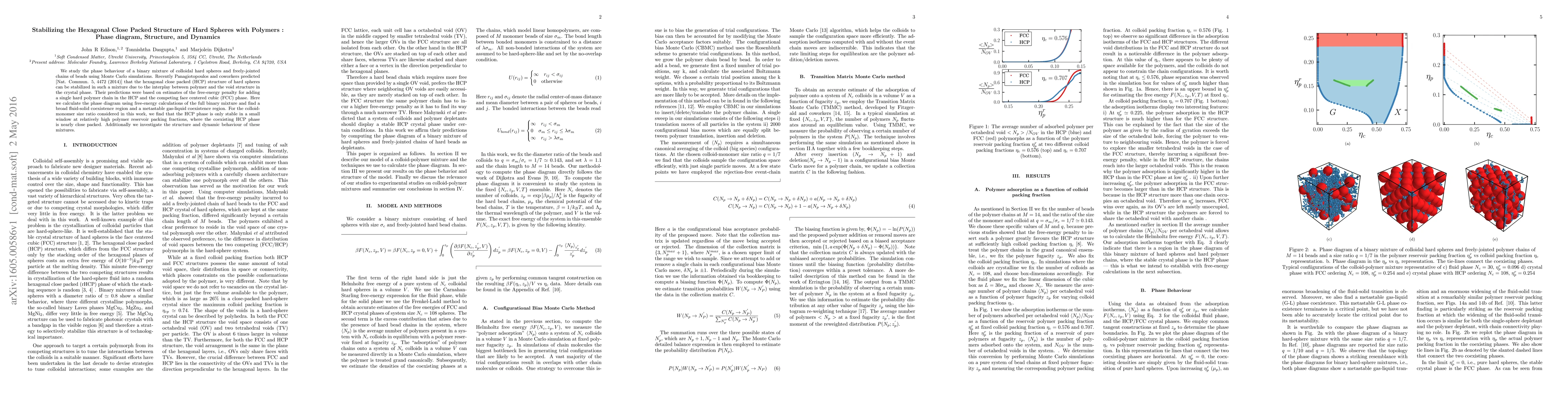 Researchers used simulations to study a mixture of hard spheres and polymers, finding that the hexagonal close-packed structure can be stabilized in a specific range of conditions, and that this structure is only stable at high polymer reservoir packing fractions.