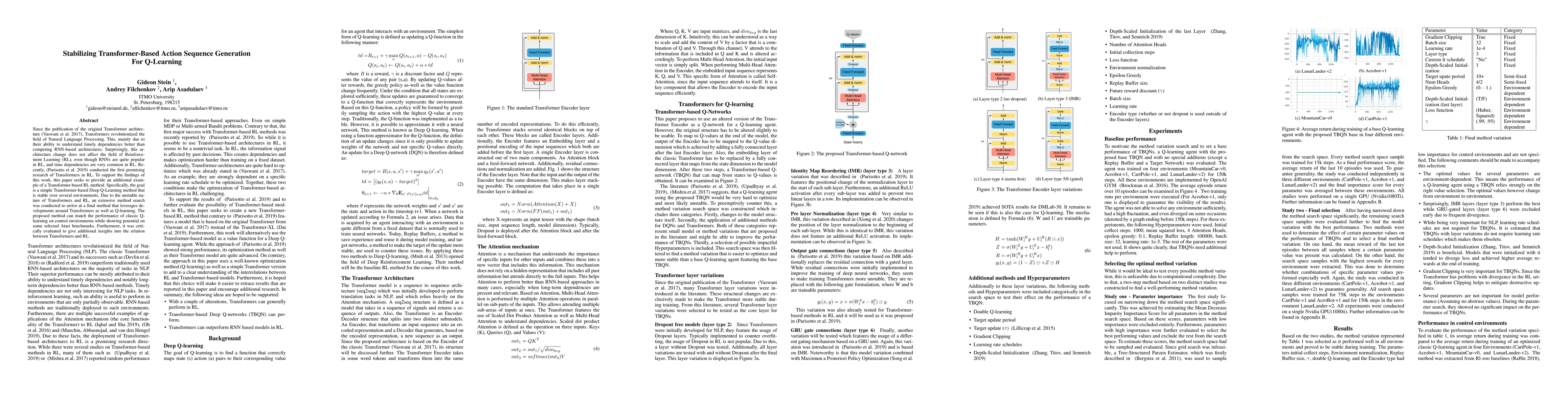 Since the publication of the original Transformer architecture (Vaswani et al. 2017), Transformers revolutionized the field of Natural Language Processing. This, mainly due to their ability to understand timely dependencies better than competing RNN-based architectures. Surprisingly, this architecture change does not affect the field of Reinforcement Learning (RL), even though RNNs are quite popular in RL, and time dependencies are very common in RL. Recently, Parisotto et al. 2019) conducted the first promising research of Transformers in RL. To support the findings of this work, this paper seeks to provide an additional example of a Transformer-based RL method. Specifically, the goal is a simple Transformer-based Deep Q-Learning method that is stable over several environments. Due to the unstable nature of Transformers and RL, an extensive method search was conducted to arrive at a final method that leverages developments around Transformers as well as Q-learning. The proposed method can match the performance of classic Q-learning on control environments while showing potential on some selected Atari benchmarks. Furthermore, it was critically evaluated to give additional insights into the relation between Transformers and RL.