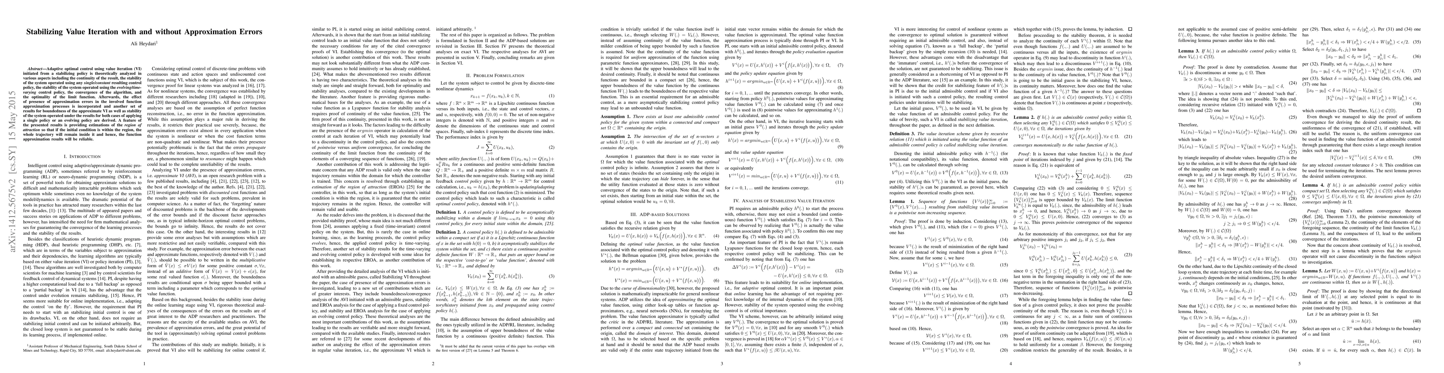 This research paper analyzes the stability and convergence of value iteration algorithms with and without approximation errors, providing estimations of regions of attraction for reliable function approximation results.