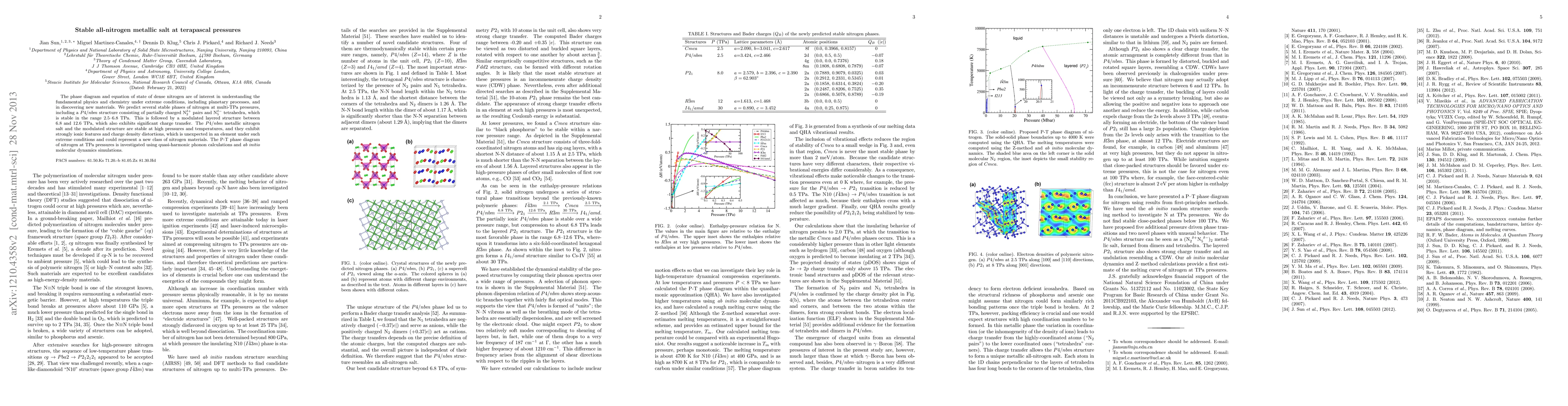 Researchers predict several stable nitrogen phases at terapascal pressures, including a metallic salt structure stable from 2.5-6.8 TPa, revealing unexpected ionic features and charge density distortions under extreme conditions. These findings could lead to the discovery of new nitrogen materials and enhance understanding of planetary processes.