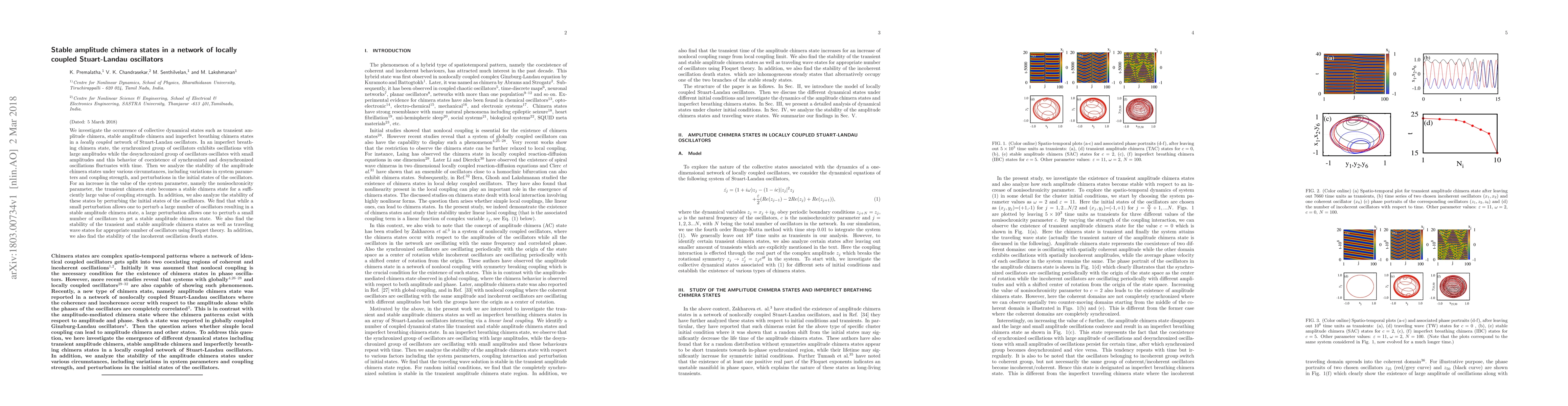 This paper explores the emergence of various amplitude chimera states in a network of locally coupled Stuart-Landau oscillators, analyzing their stability under different conditions. It finds that stable amplitude chimera states can emerge with sufficient coupling strength and parameter adjustments, and their stability varies with the size of initial state perturbations.