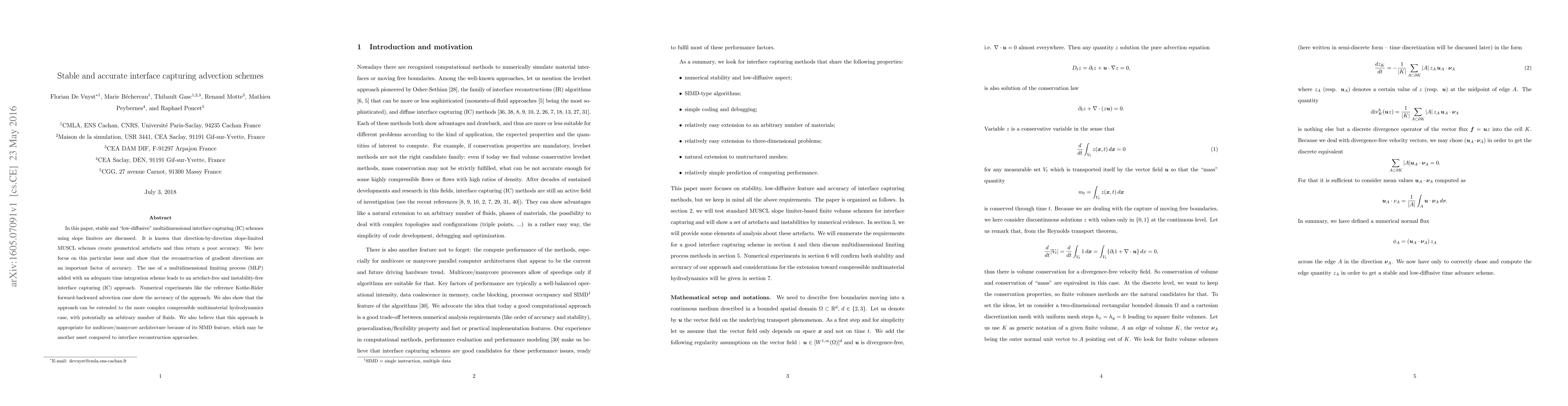 This paper introduces a multidimensional interface capturing scheme that addresses issues of geometrical artifacts and instability in traditional methods, achieving stable and accurate results in advection problems.