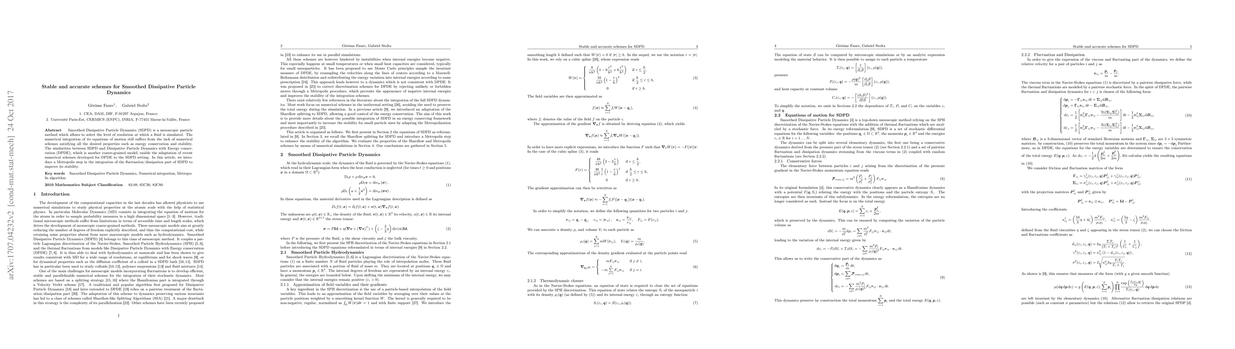 This paper introduces stable and accurate numerical schemes for Smoothed Dissipative Particle Dynamics (SDPD) by adapting methods from Dissipative Particle Dynamics with Energy conservation (DPDE). The proposed approach includes a Metropolis step to enhance stability while maintaining energy conservation and parallelizability.