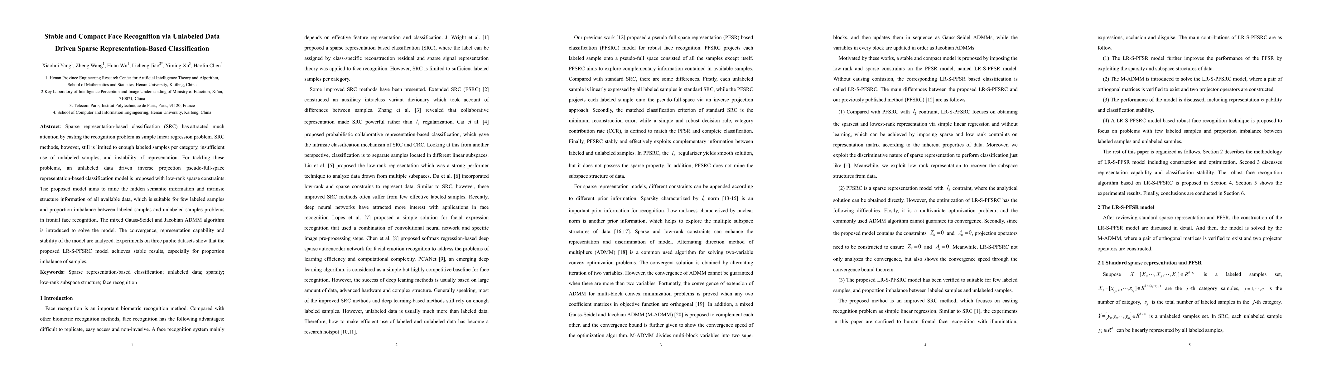 This paper proposes an unlabeled data driven sparse representation-based classification model with low-rank constraints to improve face recognition with limited labeled samples. The model leverages hidden semantic information and intrinsic structure, achieving stable results, especially in scenarios with sample proportion imbalance, as demonstrated by experiments on three public datasets.