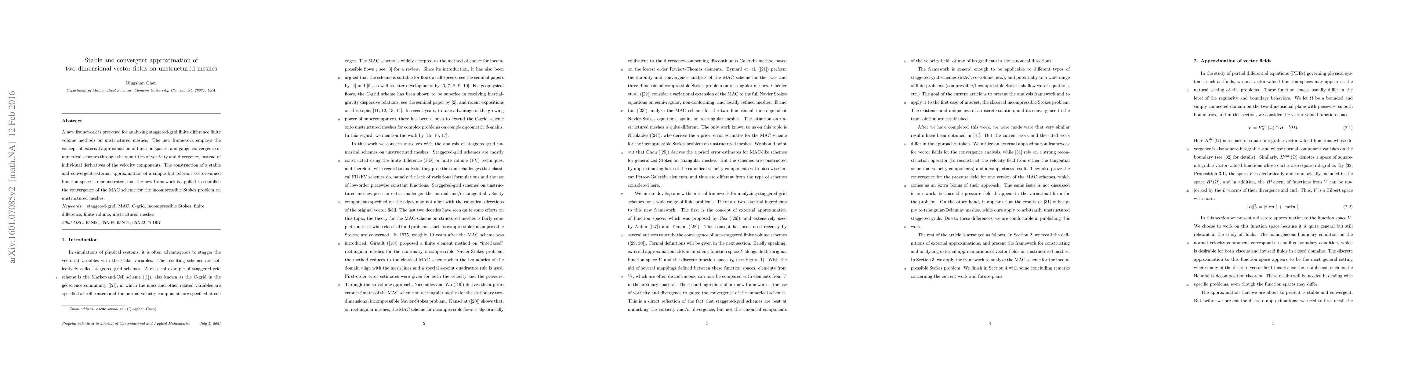 This paper introduces a novel framework for analyzing staggered-grid finite difference finite volume methods on unstructured meshes, focusing on external approximation of function spaces and gauge convergence via vorticity and divergence. It demonstrates the convergence of the MAC scheme for the incompressible Stokes problem on such meshes.