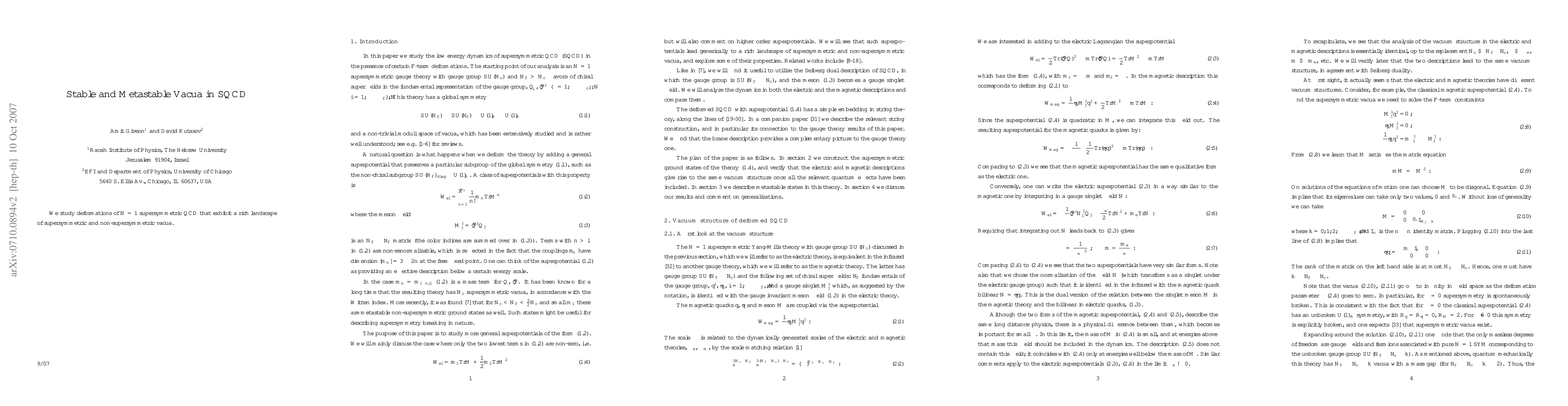 This paper investigates deformations of supersymmetric QCD, finding a rich landscape of vacua that are both stable and metastable. It explores the possibility of multiple solutions to quantum field theory problems.