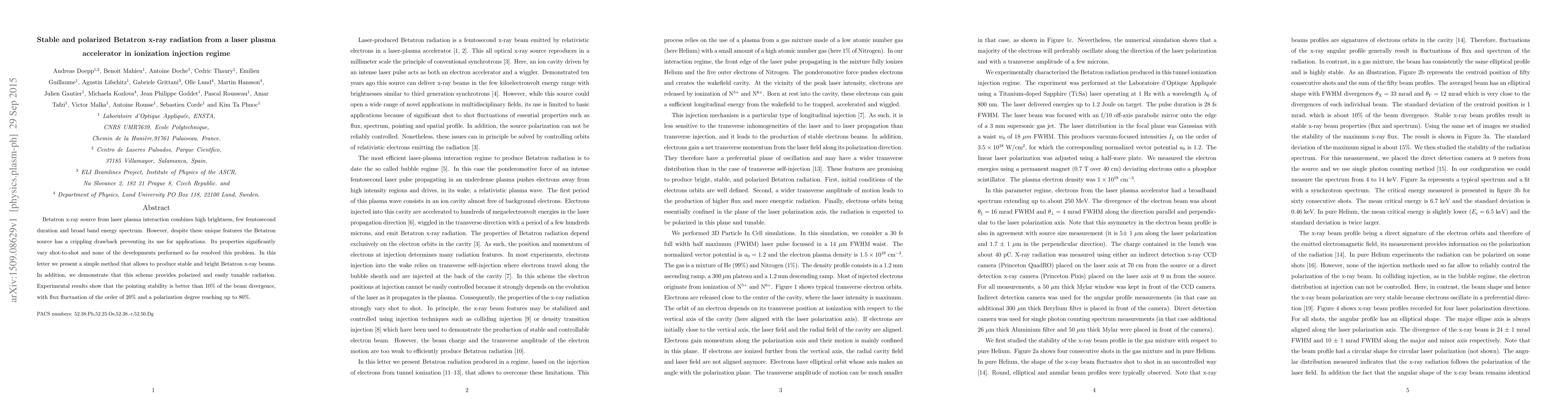 This paper presents a method to generate stable, polarized, and tunable Betatron x-ray radiation from a laser plasma accelerator using ionization injection. Experimental results show improved shot-to-shot stability, with pointing stability better than 10% and a polarization degree up to 80%.