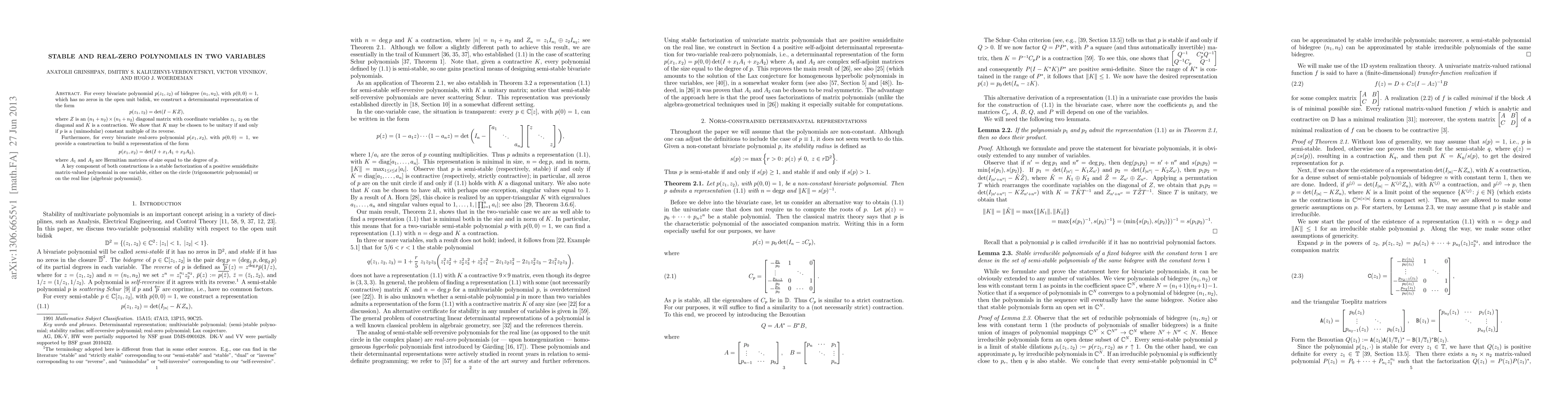 Researchers develop a method to represent bivariate polynomials as determinantal expressions, enabling construction of polynomial representations from stable factorizations of positive semidefinite matrices.