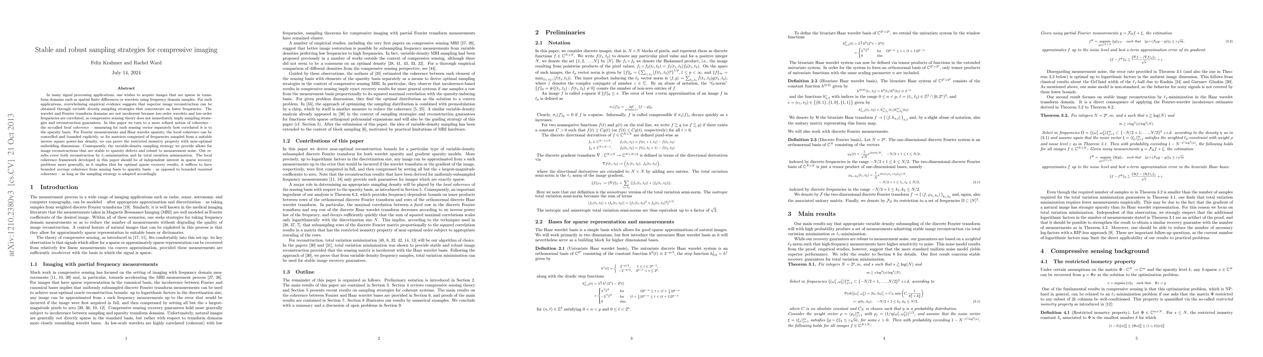 In many signal processing applications, one wishes to acquire images that are sparse in transform domains such as spatial finite differences or wavelets using frequency domain samples. For such applications, overwhelming empirical evidence suggests that superior image reconstruction can be obtained through variable density sampling strategies that concentrate on lower frequencies. The wavelet and Fourier transform domains are not incoherent because low-order wavelets and low-order frequencies are correlated, so compressive sensing theory does not immediately imply sampling strategies and reconstruction guarantees. In this paper we turn to a more refined notion of coherence -- the so-called local coherence -- measuring for each sensing vector separately how correlated it is to the sparsity basis. For Fourier measurements and Haar wavelet sparsity, the local coherence can be controlled and bounded explicitly, so for matrices comprised of frequencies sampled from a suitable inverse square power-law density, we can prove the restricted isometry property with near-optimal embedding dimensions. Consequently, the variable-density sampling strategy we provide allows for image reconstructions that are stable to sparsity defects and robust to measurement noise. Our results cover both reconstruction by $\ell_1$-minimization and by total variation minimization. The local coherence framework developed in this paper should be of independent interest in sparse recovery problems more generally, as it implies that for optimal sparse recovery results, it suffices to have bounded \emph{average} coherence from sensing basis to sparsity basis -- as opposed to bounded maximal coherence -- as long as the sampling strategy is adapted accordingly.