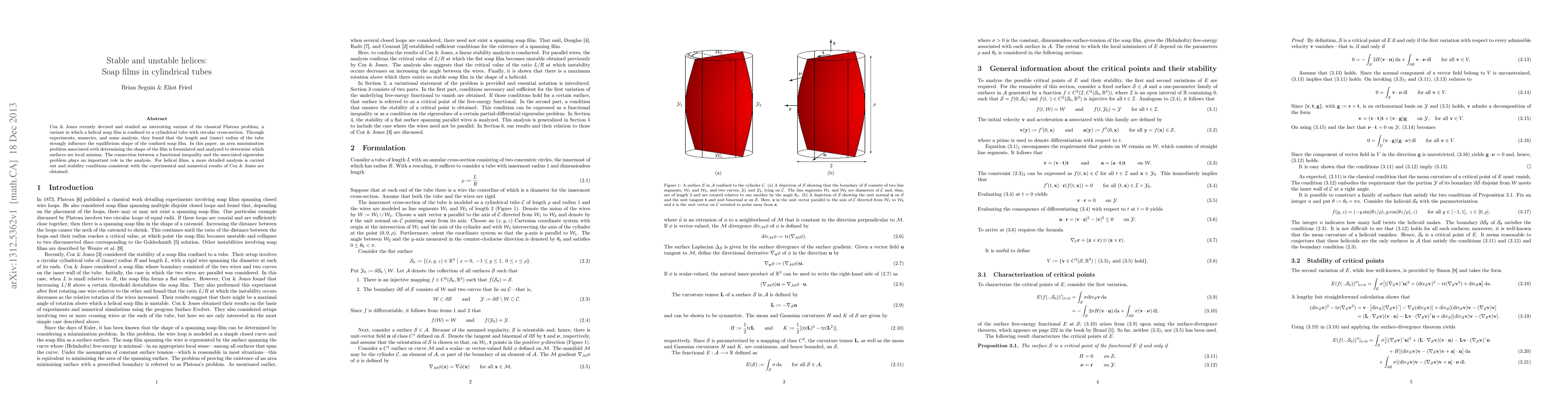 Cox & Jones recently devised and studied an interesting variant of the classical Plateau problem, a variant in which a helical soap film is confined to a cylindrical tube with circular cross-section. Through experiments, numerics, and some analysis, they found that the length and (inner) radius of the tube strongly influence the equilibrium shape of the confined soap film. In this paper, an area minimization problem associated with determining the shape of the film is formulated and analyzed to determine which surfaces are local minima. The connection between a functional inequality and the associated eigenvalue problem plays an important role in the analysis. For helical films, a more detailed analysis is carried out and stability conditions consistent with the experimental and numerical results of Cox & Jones are obtained.