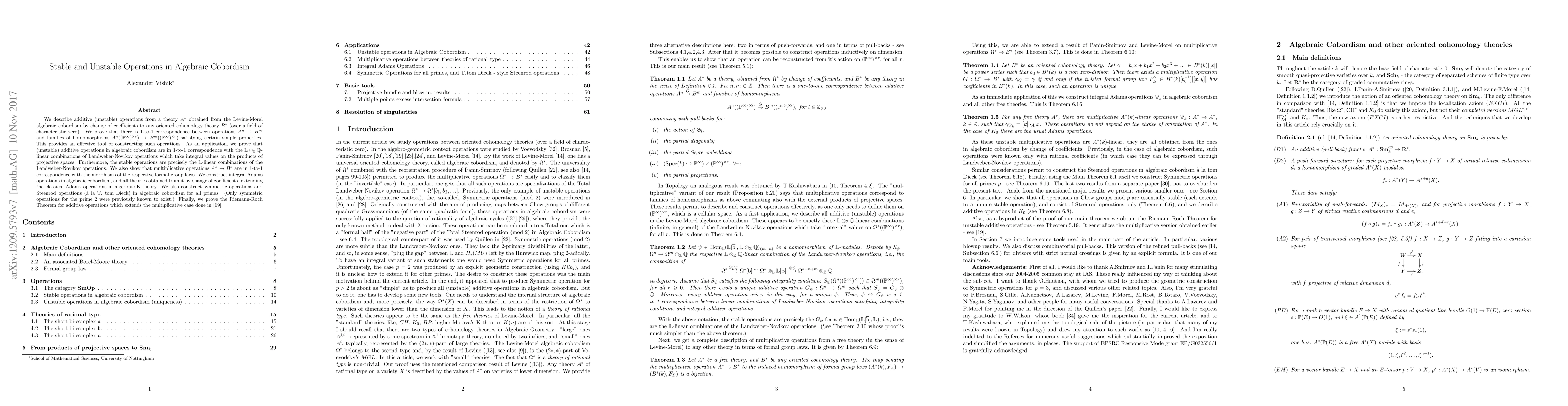 This paper establishes a 1-to-1 correspondence between unstable additive operations in Algebraic Cobordism and L⊗_Z Q-linear combinations of Landweber-Novikov operations, while also identifying stable operations as L-linear combinations of Landweber-Novikov operations. It constructs Integral Adams Operations and Symmetric Operations for primes p, and proves the Riemann-Roch Theorem for unstable operations.