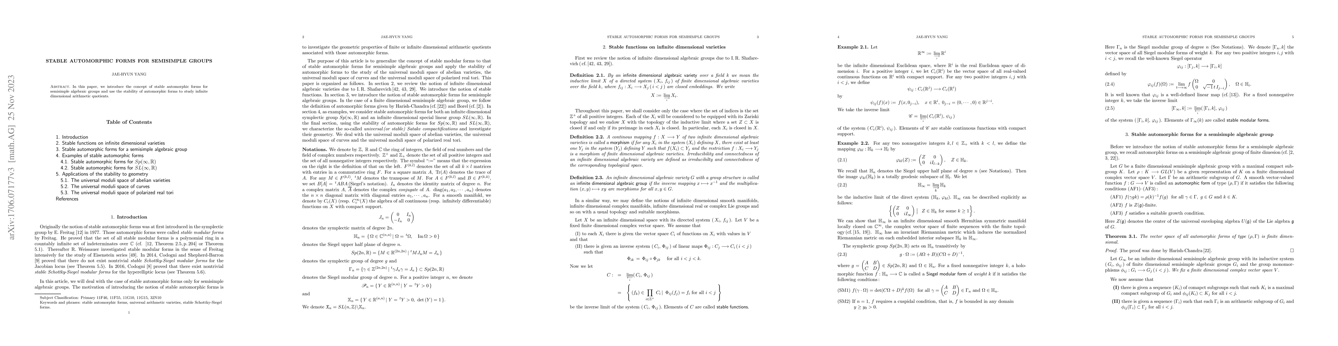 Summary: This paper introduces stable automorphic forms for semisimple algebraic groups and utilizes their stability properties to investigate infinite-dimensional arithmetic quotients, contributing to the understanding of their structure and significance.