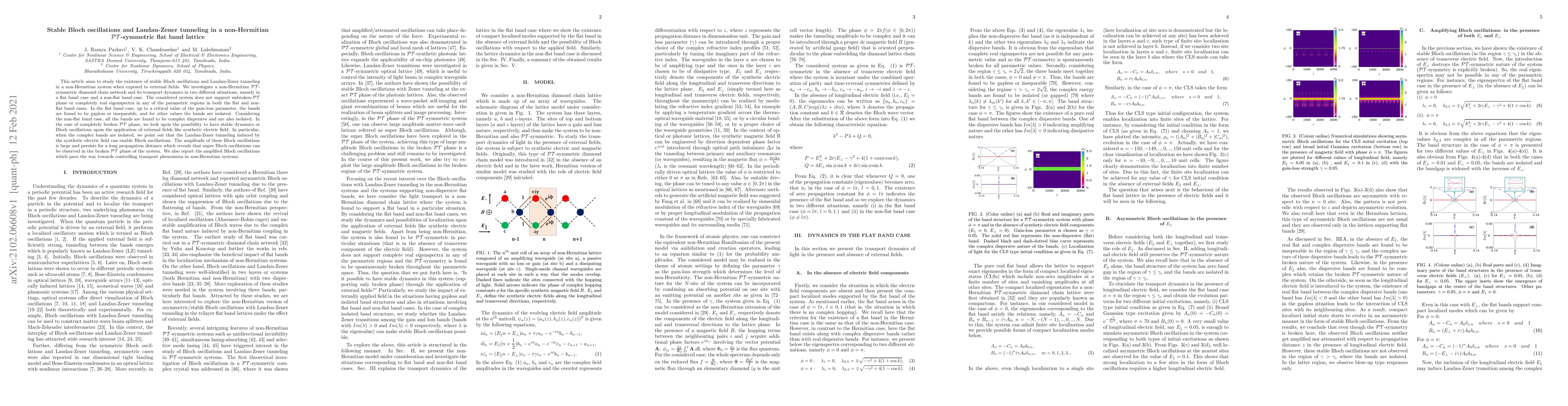This article aims to study the existence of stable Bloch oscillations and Landau-Zener tunneling in a non-Hermitian system when exposed to external fields. We investigate a non-Hermitian $\cal{PT}$-symmetric diamond chain network and its transport dynamics in two different situations, namely in a flat band case and a non-flat band case. The considered system does not support unbroken-$\cal{PT}$ phase or completely real eigenspectra in any of the parametric regions in both the flat and non-flat band cases. In the flat band case, up to a critical value of the gain-loss parameter, the bands are found to be gapless or inseparable, and for other values the bands are isolated. Considering the non-flat band case, all the bands are found to be complex dispersive and are also isolated. In the case of completely broken $\cal{PT}$ phase, we look upon the possibility to have stable dynamics or Bloch oscillations upon the application of external fields like synthetic electric field. In particular, when the complex bands are isolated, we point out that the Landau-Zener tunneling induced by the synthetic electric field can enable Bloch oscillations. The amplitude of these Bloch oscillations is large and persists for a long propagation distance which reveals that super Bloch oscillations can be observed in the broken $\cal{PT}$ phase of the system. We also report the amplified Bloch oscillations which pave the way towards controlling transport phenomena in non-Hermitian systems.