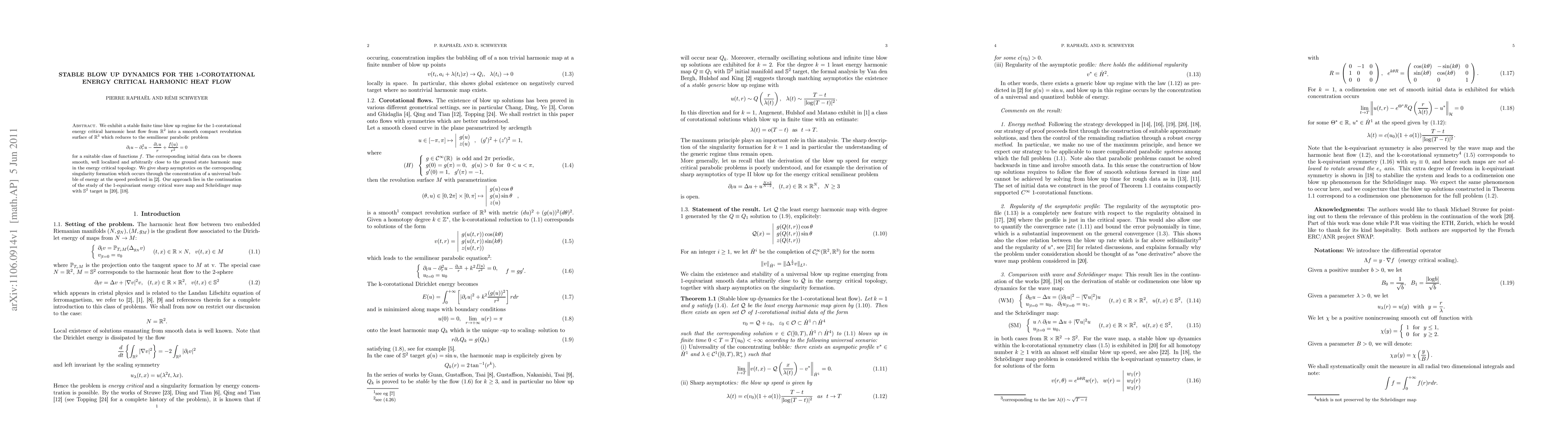 This paper demonstrates a stable finite-time blow up regime for the 1-corotational energy critical harmonic heat flow, showing that singularity formation occurs through the concentration of a universal energy bubble. The study builds on previous work on wave maps and Schrödinger maps, providing sharp asymptotics for the blow up process.