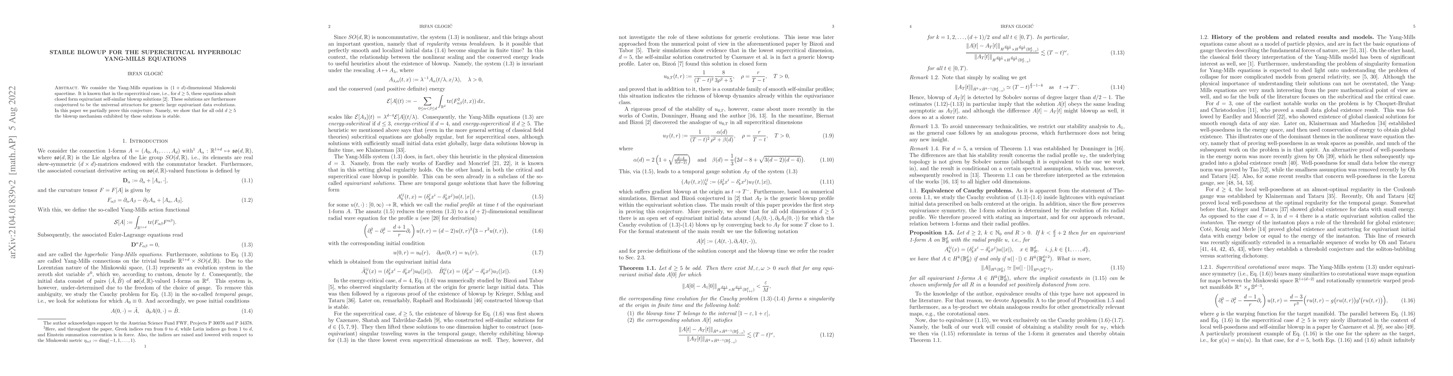 We consider the Yang-Mills equations in $(1+d)$-dimensional Minkowski spacetime. It is known that in the supercritical case, i.e., for $d \geq 5$, these equations admit closed form equivariant self-similar blowup solutions \cite{BieBiz15}. These solutions are furthermore conjectured to be the universal attractors for generic large equivariant data evolutions. In this paper we partially prove this conjecture. Namely, we show that for all odd $d \geq 5$ the blowup mechanism exhibited by these solutions is stable.