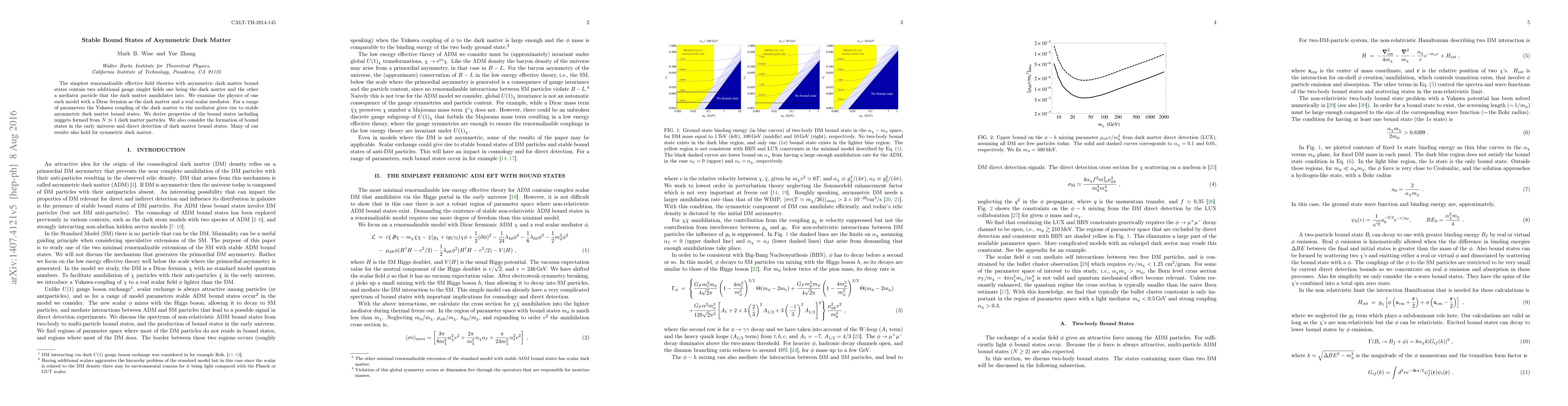 The simplest renormalizable effective field theories with asymmetric dark matter bound states contain two additional gauge singlet fields one being the dark matter and the other a mediator particle that the dark matter annihilates into. We examine the physics of one such model with a Dirac fermion as the dark matter and a real scalar mediator. For a range of parameters the Yukawa coupling of the dark matter to the mediator gives rise to stable asymmetric dark matter bound states. We derive properties of the bound states including nuggets formed from $N\gg1$ dark matter particles. We also consider the formation of bound states in the early universe and direct detection of dark matter bound states. Many of our results also hold for symmetric dark matter.