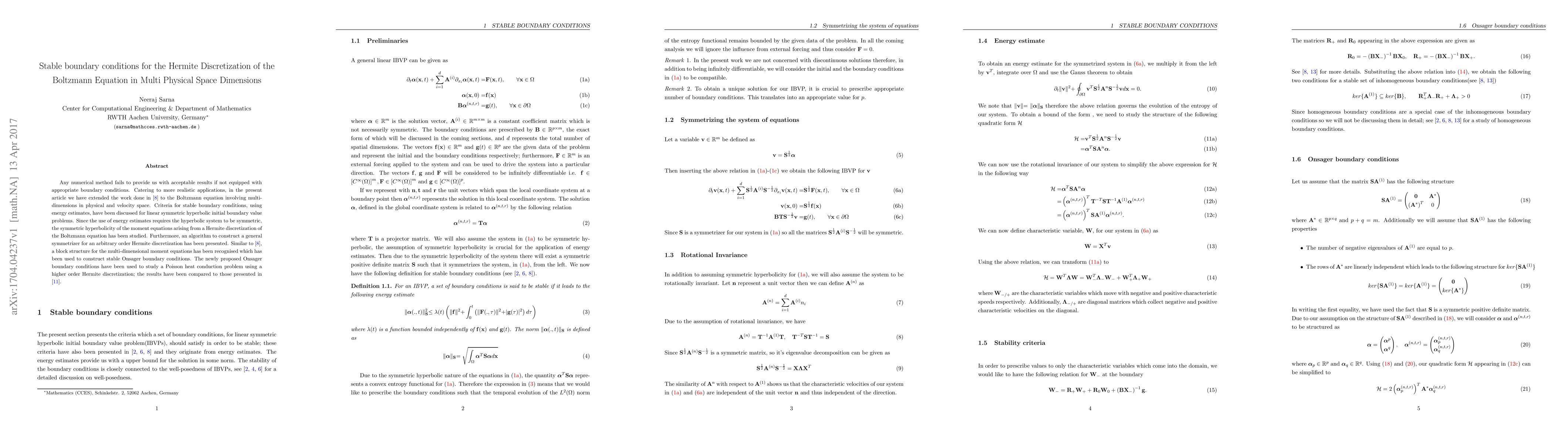 This paper develops stable boundary conditions for the Hermite discretization of the multi-dimensional Boltzmann equation, focusing on symmetric hyperbolicity and energy estimates. It proposes a method to construct Onsager boundary conditions and validates them through a Poisson heat conduction problem.