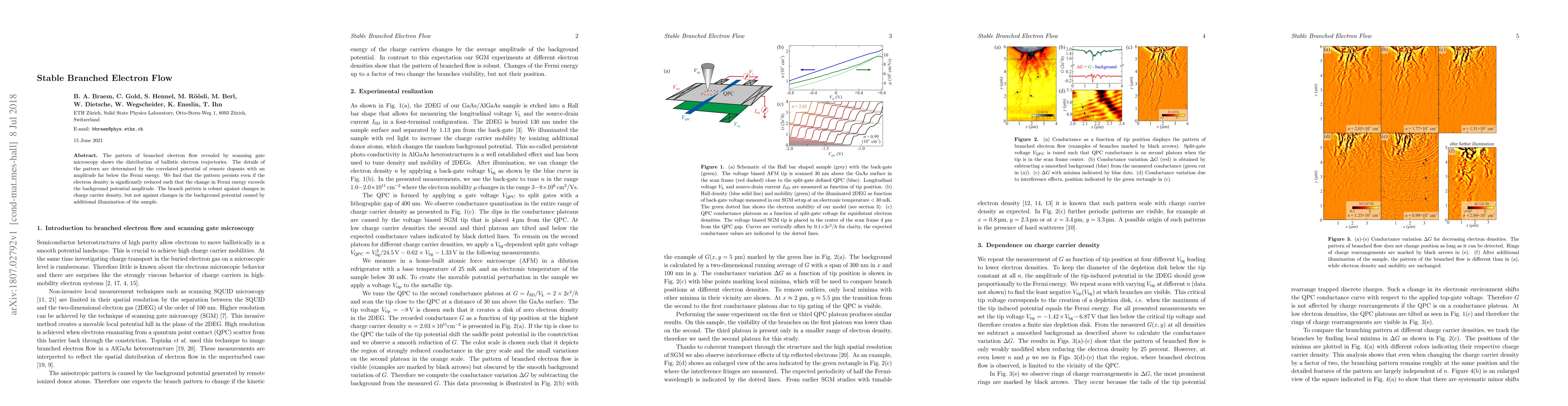 The pattern of branched electron flow revealed by scanning gate microscopy shows the distribution of ballistic electron trajectories. The details of the pattern are determined by the correlated potential of remote dopants with an amplitude far below the Fermi energy. We find that the pattern persists even if the electron density is significantly reduced such that the change in Fermi energy exceeds the background potential amplitude. The branch pattern is robust against changes in charge carrier density, but not against changes in the background potential caused by additional illumination of the sample.