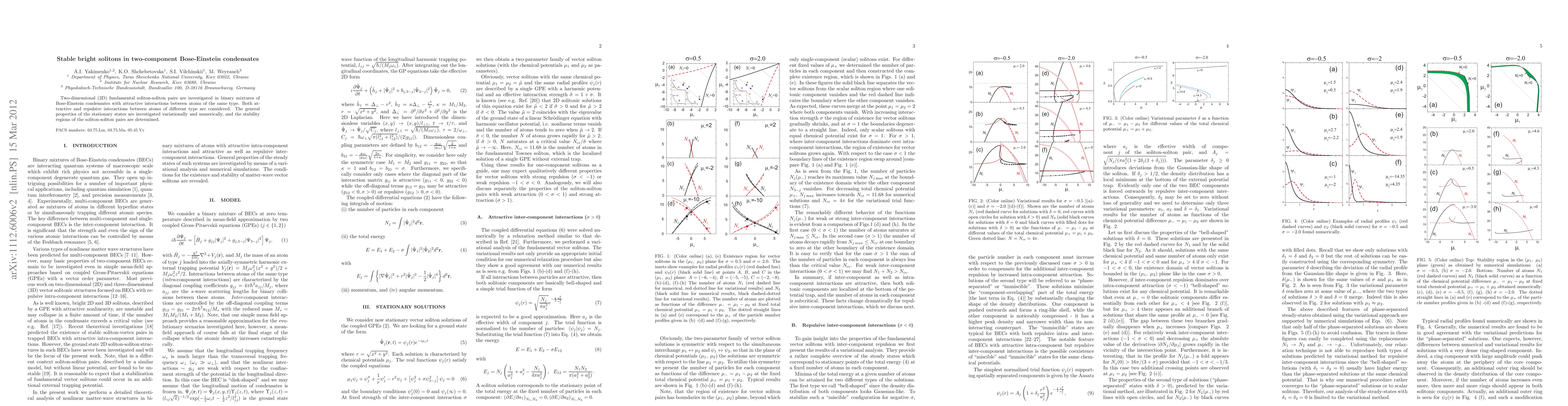 This paper investigates stable bright soliton pairs in two-component Bose-Einstein condensates with both attractive and repulsive interspecies interactions. The study determines the stability regions of these soliton pairs through variational and numerical methods.