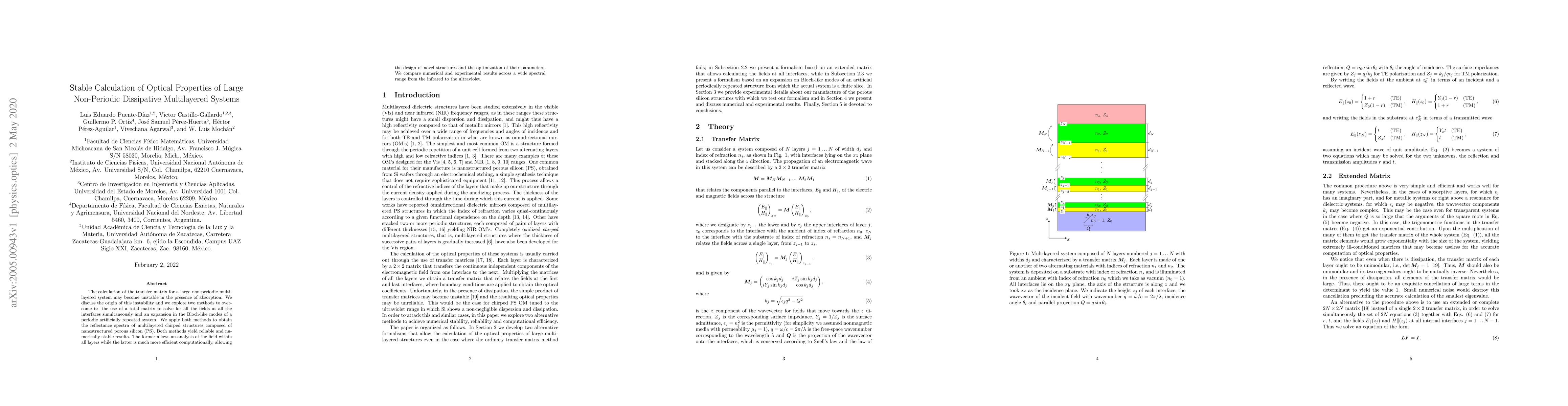 The calculation of the transfer matrix for a large non-periodic multilayered system may become unstable in the presence of absorption. We discuss the origin of this instability and we explore two methods to overcome it: the use of a total matrix to solve for all the fields at all the interfaces simultaneously and an expansion in the Bloch-like modes of a periodic artificially repeated system. We apply both methods to obtain the reflectance spectra of multilayered chirped structures composed of nanostructured porous silicon (PS). Both methods yield reliable and numerically stable results. The former allows an analysis of the field within all layers while the latter is much more efficient computationally, allowing the design of novel structures and the optimization of their parameters. We compare numerical and experimental results across a wide spectral range from the infrared to the ultraviolet.