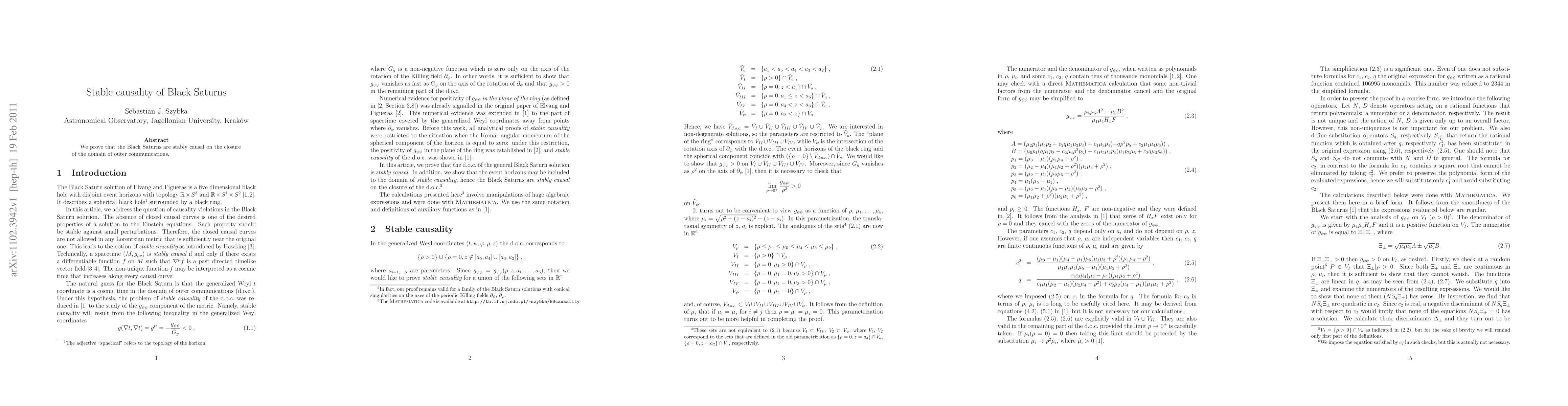 We prove that the Black Saturns are stably causal on the closure of the domain of outer communications.