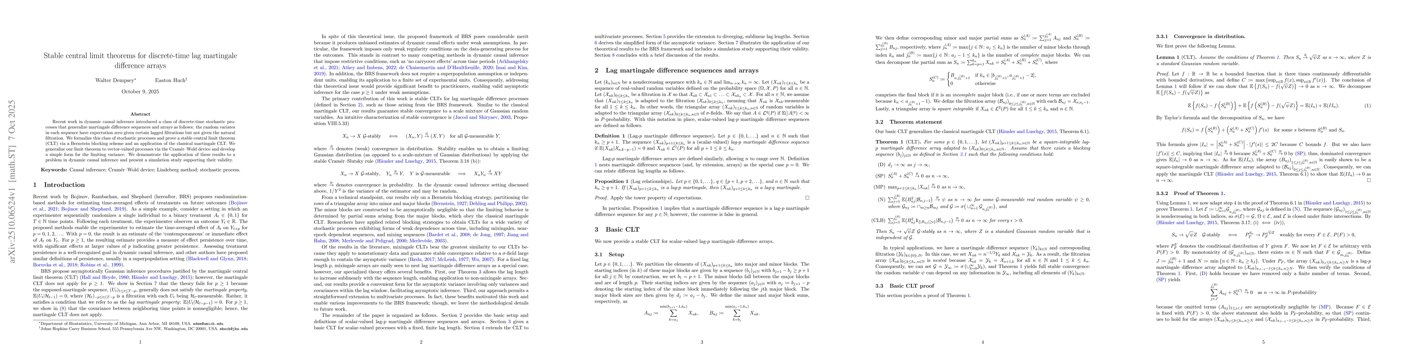 Recent work in dynamic causal inference introduced a class of discrete-time stochastic processes that generalize martingale difference sequences and arrays as follows: the random variates in each sequence have expectation zero given certain lagged filtrations but not given the natural filtration. We formalize this class of stochastic processes and prove a stable central limit theorem (CLT) via a Bernstein blocking scheme and an application of the classical martingale CLT. We generalize our limit theorem to vector-valued processes via the Cram\'er-Wold device and develop a simple form for the limiting variance. We demonstrate the application of these results to a problem in dynamic causal inference and present a simulation study supporting their validity.