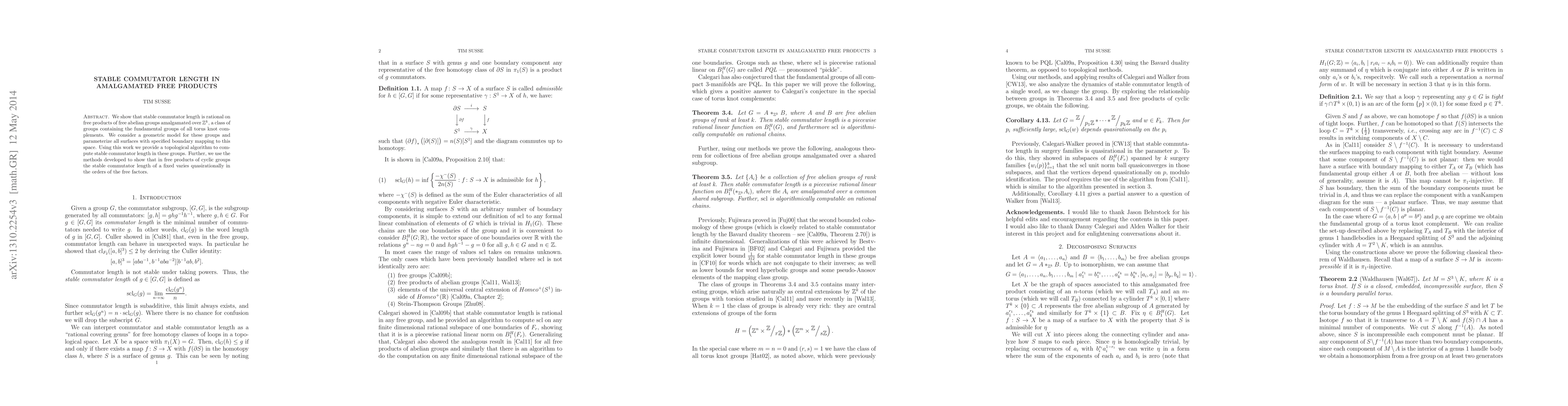 We show that stable commutator length is rational on free products of free Abelian groups amalgamated over $\mathbb{Z}^k$, a class of groups containing the fundamental groups of all torus knot complements. We consider a geometric model for these groups and parameterize all surfaces with specified boundary mapping to this space. Using this work we provide a topological algorithm to compute stable commutator length in these groups. Further, we use the methods developed to show that in free products of cyclic groups the stable commutator length of a fixed varies quasirationally in the orders of the free factors.