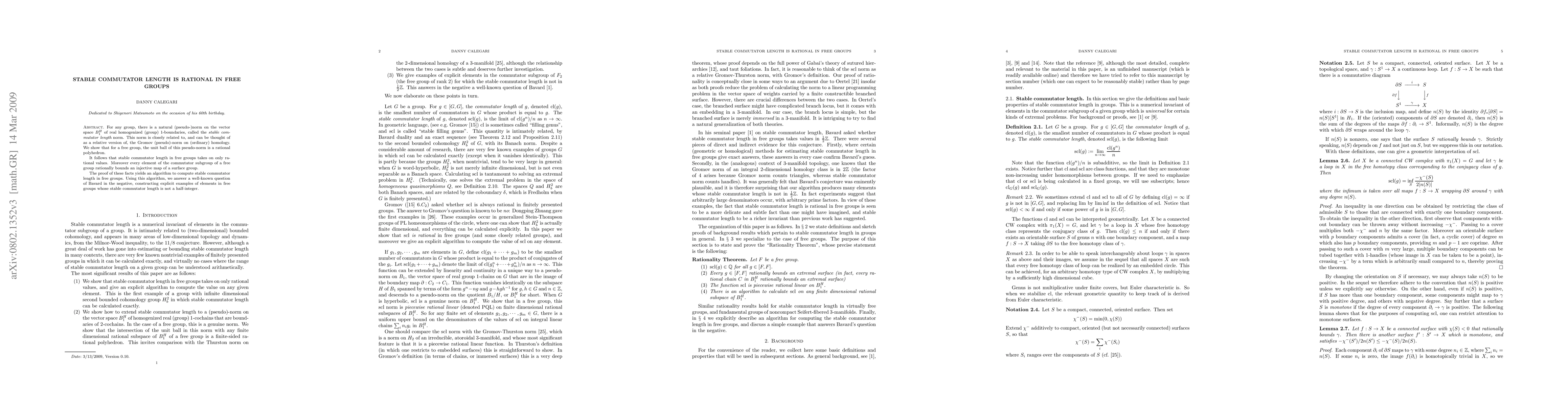 The paper introduces a method to compute stable commutator length in free groups, proves its rationality, and provides an algorithm based on branched surface theory and geometric group theory.