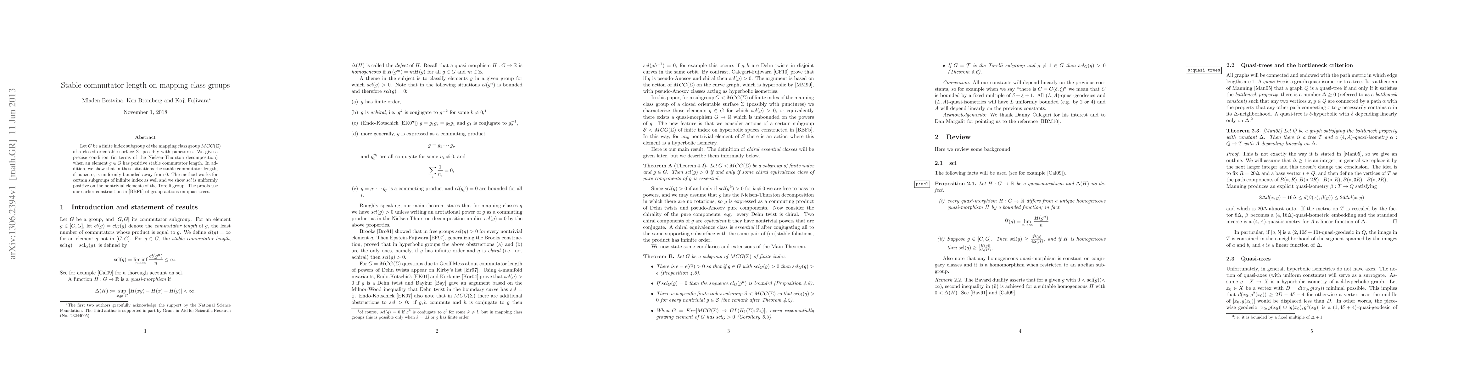 This paper provides a condition for positive stable commutator length in finite index subgroups of mapping class groups, showing it is uniformly bounded away from zero when nonzero. The method extends to certain infinite index subgroups and demonstrates uniformly positive stable commutator length for nontrivial elements in the Torelli group, using group actions on quasi-trees.