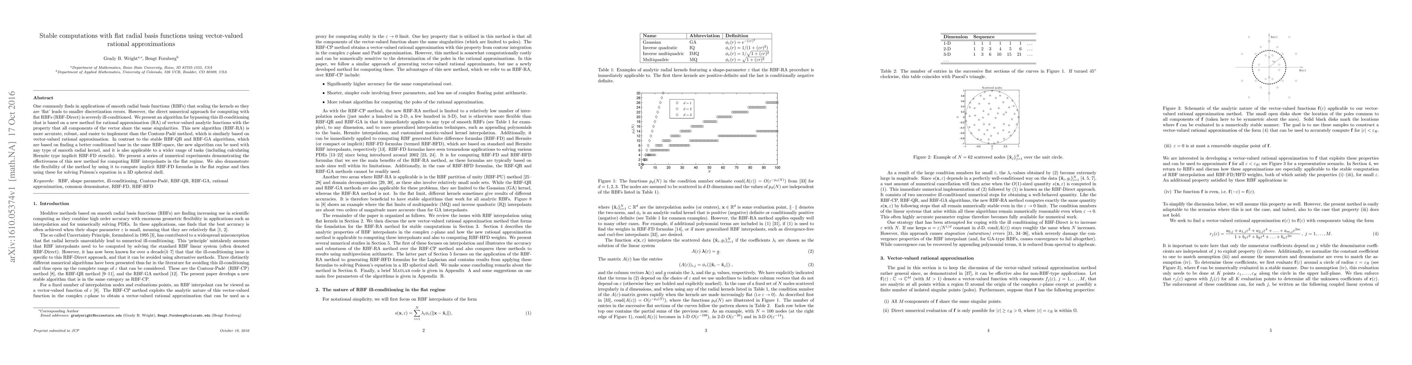 This paper introduces a new algorithm, RBF-RA, for stable computations using flat radial basis functions by employing vector-valued rational approximations. Unlike the ill-conditioned RBF-Direct method, RBF-RA is more accurate, robust, and easier to implement, offering flexibility for various tasks beyond traditional RBF-QR and RBF-GA methods.