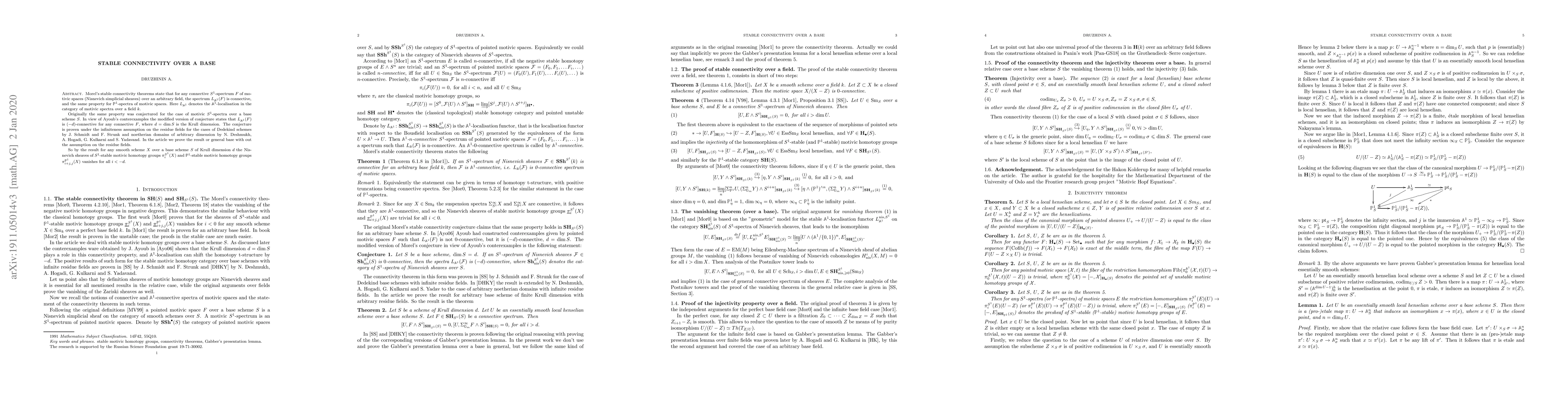 Researchers prove that motivic spectra over arbitrary base schemes satisfy stable connectivity theorems, extending previous results for Dedekind schemes and noetherian domains.