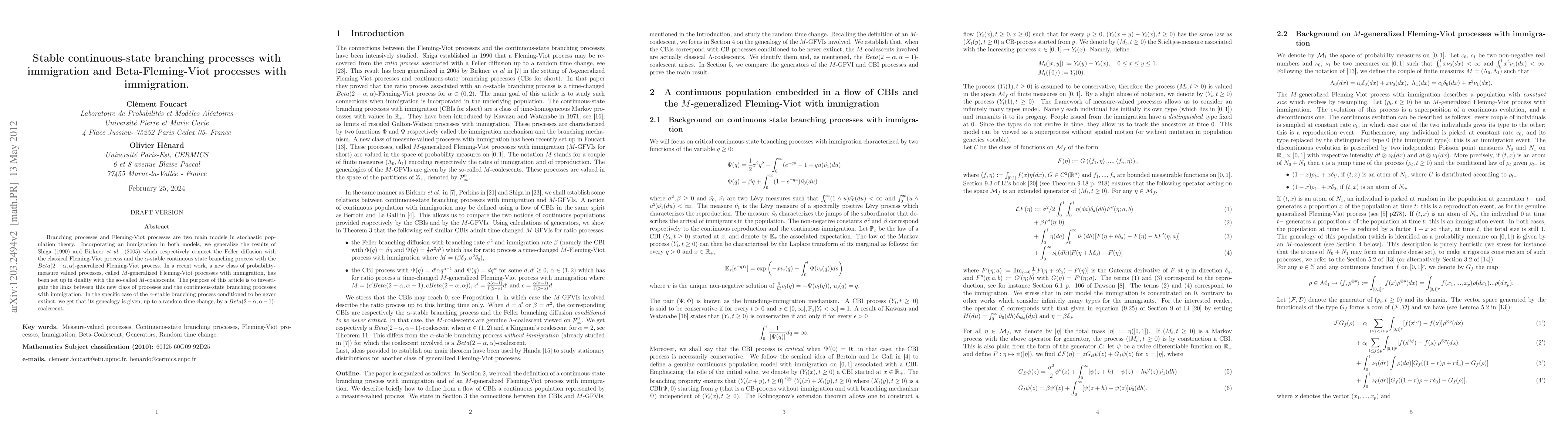 This paper explores the connections between stable continuous branching processes with immigration and Beta-Fleming-Viot processes with immigration, extending previous results and introducing new M-generalized Fleming-Viot processes. It reveals that the genealogy of the $\alpha$-stable branching process conditioned to never go extinct follows a Beta(2-alpha, alpha-1)-coalescent.