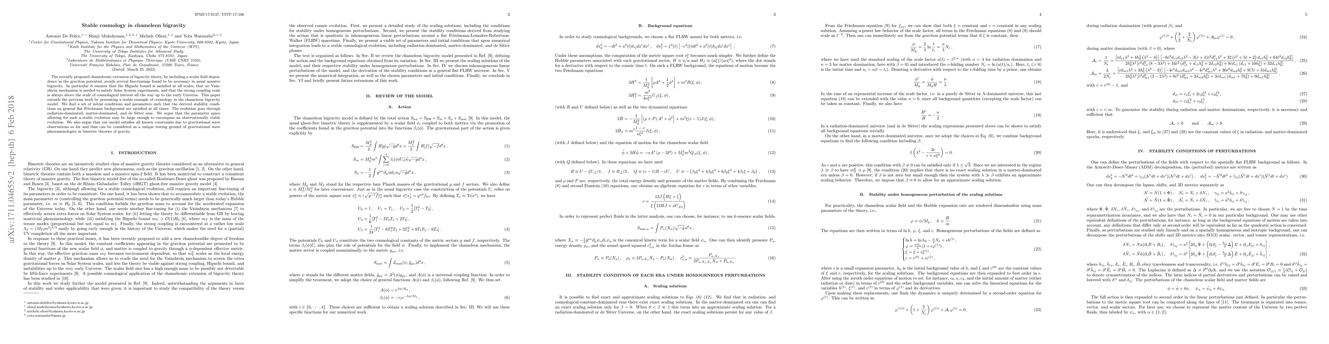 This paper explores a stable cosmology within the chameleonic extension of bigravity theory, which incorporates a scalar field to avoid fine-tunings in massive bigravity. It presents a stable cosmological model that satisfies stability conditions throughout radiation, matter, and de Sitter eras, potentially encompassing observational viability.