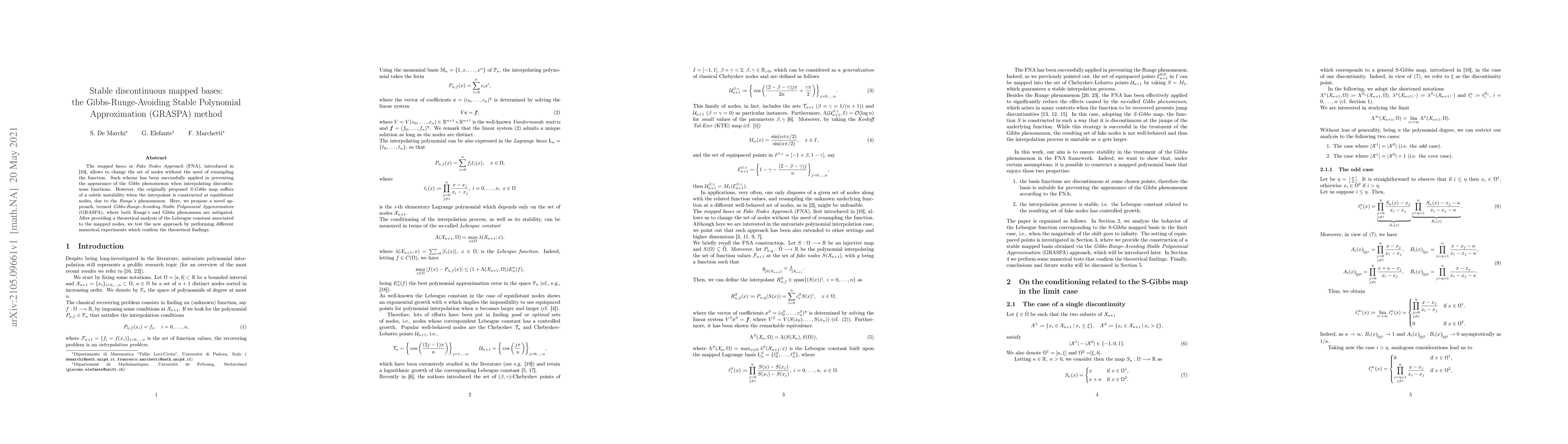 The paper introduces the GRASPA method to mitigate both Runge's and Gibbs phenomena in polynomial interpolation of discontinuous functions. It proposes a stable approach to mapped bases that avoids the instability seen in previous methods when using equidistant nodes.