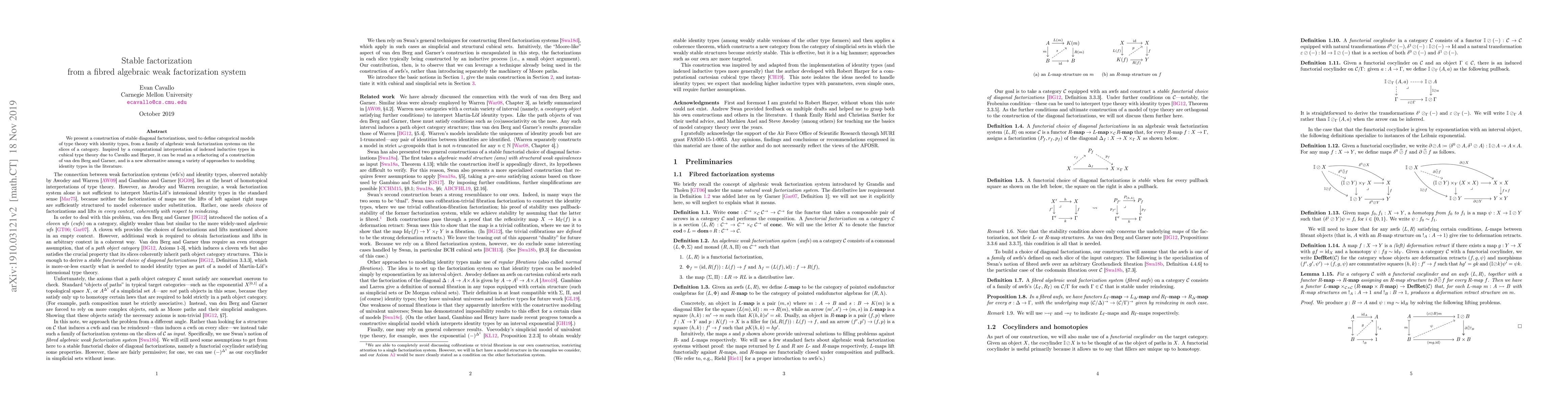 Researchers develop a method to construct stable diagonal factorizations from algebraic weak factorization systems, enabling models of type theory with identity types. This construction offers an alternative approach to modeling identity types in the field of categorical logic.