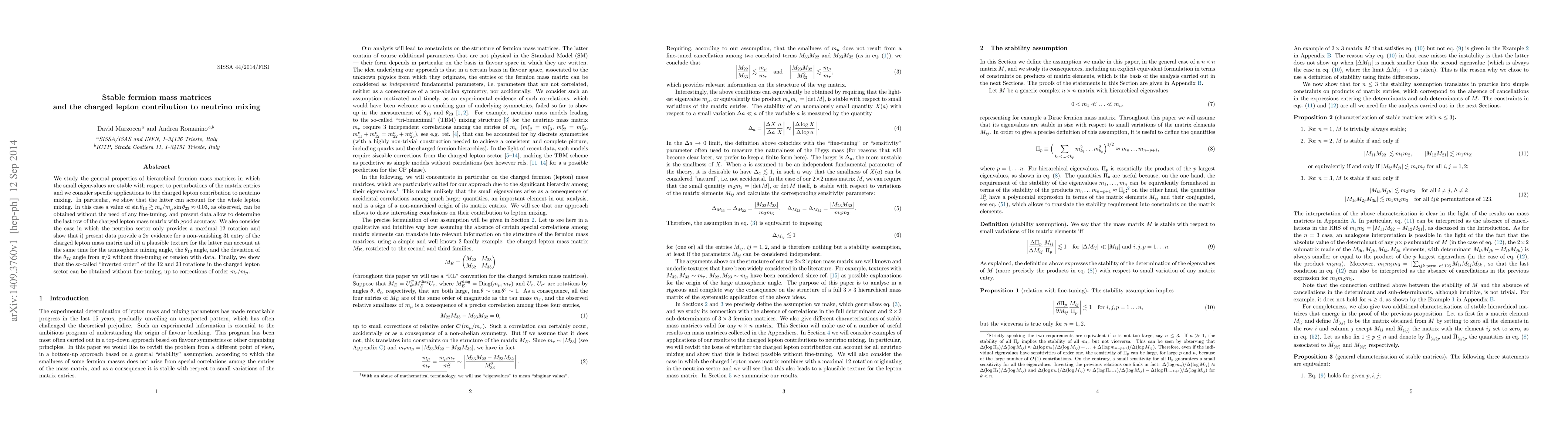 We study the general properties of hierarchical fermion mass matrices in which the small eigenvalues are stable with respect to perturbations of the matrix entries and we consider specific applications to the charged lepton contribution to neutrino mixing. In particular, we show that the latter can account for the whole lepton mixing. In this case a value of $\sin \theta_{13} \gtrsim m_e/m_\mu \sin\theta_{23} \approx 0.03$, as observed, can be obtained without the need of any fine-tuning, and present data allow to determine the last row of the charged lepton mass matrix with good accuracy. We also consider the case in which the neutrino sector only provides a maximal 12 rotation and show that i) present data provide a $2\sigma$ evidence for a non-vanishing $31$ entry of the charged lepton mass matrix and ii) a plausible texture for the latter can account at the same time for the atmospheric mixing angle, the $\theta_{13}$ angle, and the deviation of the $\theta_{12}$ angle from $\pi/2$ without fine-tuning or tension with data. Finally, we show that the so-called "inverted order" of the 12 and 23 rotations in the charged lepton sector can be obtained without fine-tuning, up to corrections of order $m_e/m_\mu$.