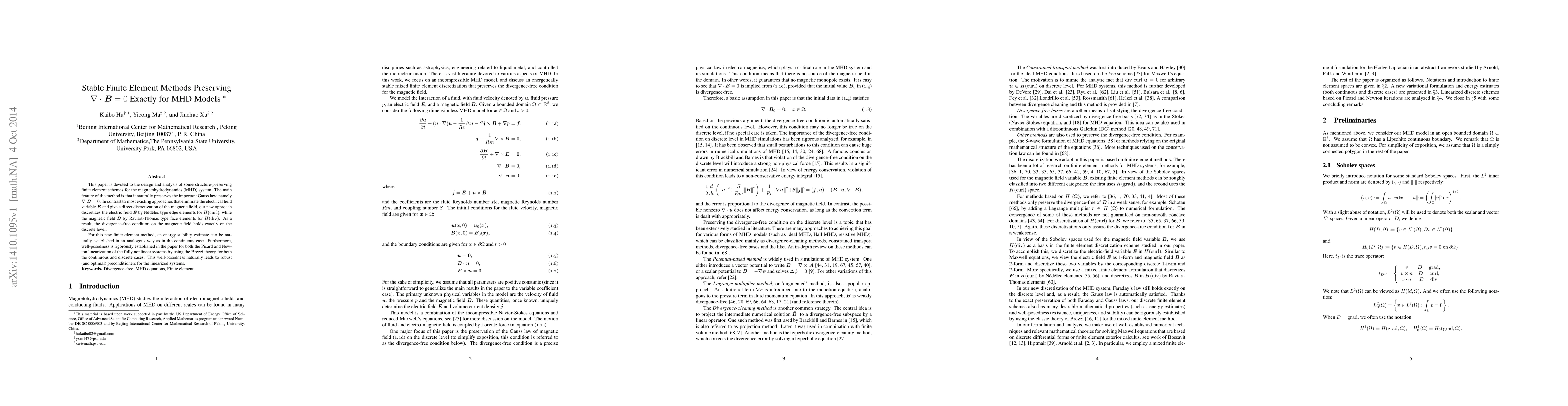 This paper develops structure-preserving finite element methods for MHD models that exactly preserve the Gauss law $\nabla\cdot\boldsymbol{B}=0$. The method discretizes the electric field using Nédélec elements and the magnetic field using Raviart-Thomas elements, ensuring the divergence-free condition holds exactly.