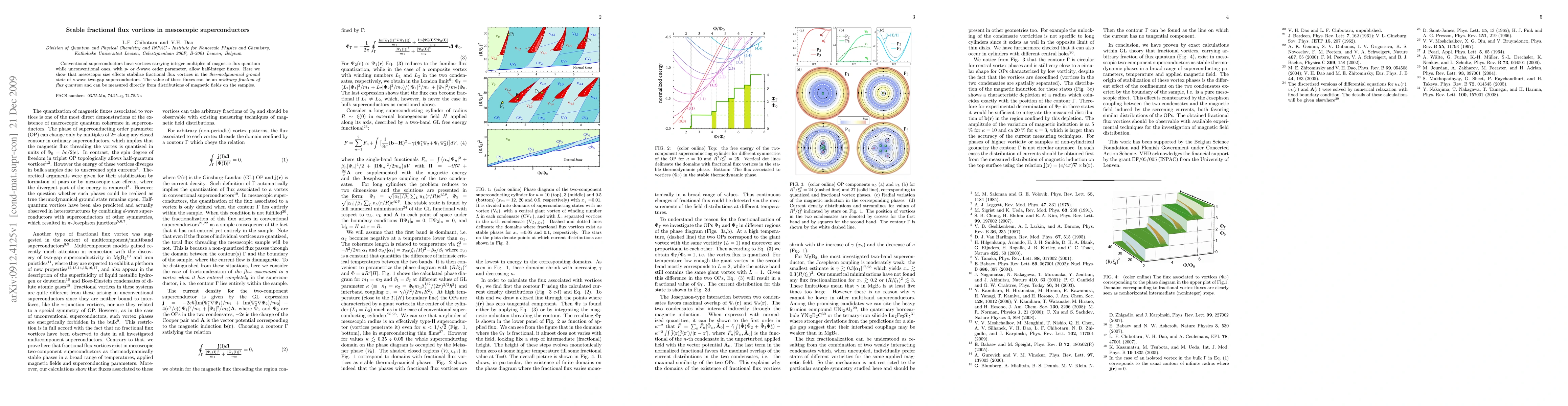 Summary: This research demonstrates that mesoscopic size effects stabilize fractional flux vortices in s-wave two-gap superconductors, allowing half-integer magnetic fluxes in the thermodynamic ground state, which can be directly measured from magnetic field distributions.
