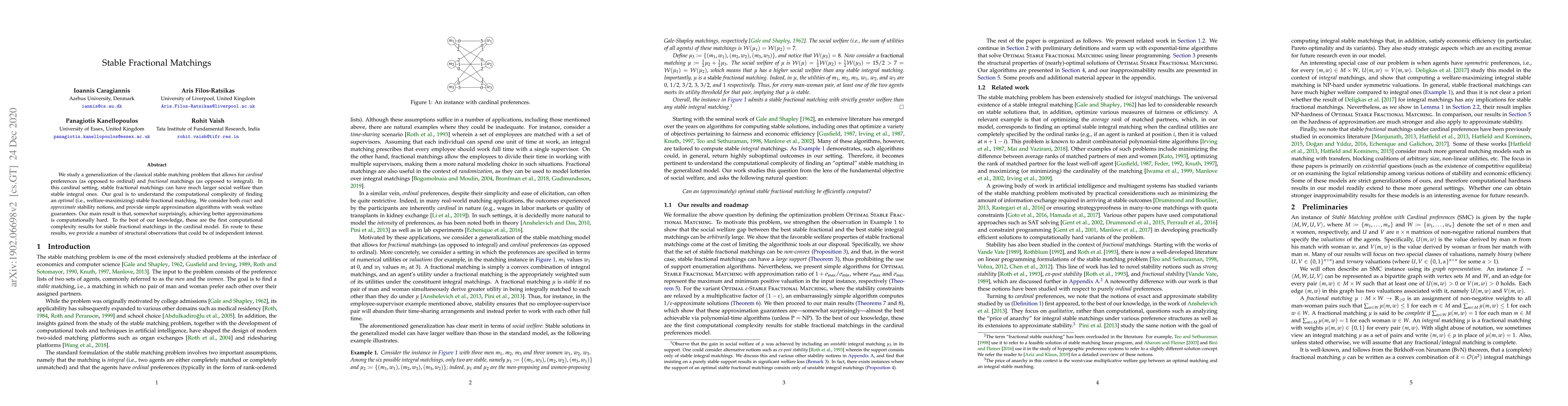 This paper explores the computational complexity of finding optimal or near-optimal stable fractional matchings, a generalization of the stable matching problem that allows for cardinal preferences and fractional allocations. The authors present simple approximation algorithms but demonstrate that achieving better approximations is computationally hard, even for approximate stability.