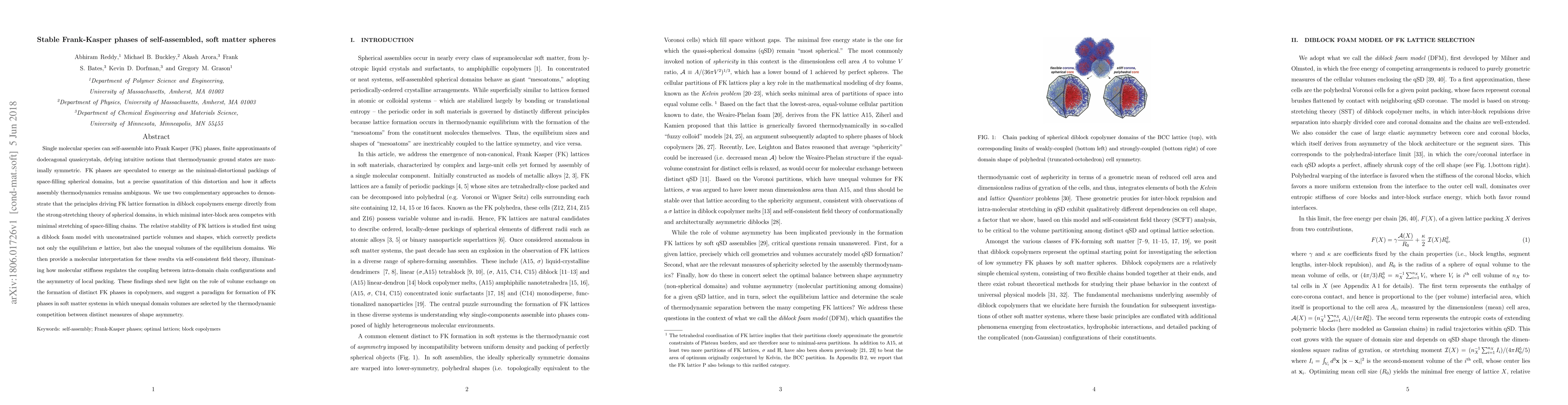 Single molecular species can self-assemble into Frank Kasper (FK) phases, finite approximants of dodecagonal quasicrystals, defying intuitive notions that thermodynamic ground states are maximally symmetric. FK phases are speculated to emerge as the minimal-distortional packings of space-filling spherical domains, but a precise quantitation of this distortion and how it affects assembly thermodynamics remains ambiguous. We use two complementary approaches to demonstrate that the principles driving FK lattice formation in diblock copolymers emerge directly from the strong-stretching theory of spherical domains, in which minimal inter-block area competes with minimal stretching of space-filling chains. The relative stability of FK lattices is studied first using a diblock foam model with unconstrained particle volumes and shapes, which correctly predicts not only the equilibrium {\sigma} lattice, but also the unequal volumes of the equilibrium domains. We then provide a molecular interpretation for these results via self-consistent field theory, illuminating how molecular stiffness regulates the coupling between intra-domain chain configurations and the asymmetry of local packing. These findings shed new light on the role of volume exchange on the formation of distinct FK phases in copolymers, and suggest a paradigm for formation of FK phases in soft matter systems in which unequal domain volumes are selected by the thermodynamic competition between distinct measures of shape asymmetry.