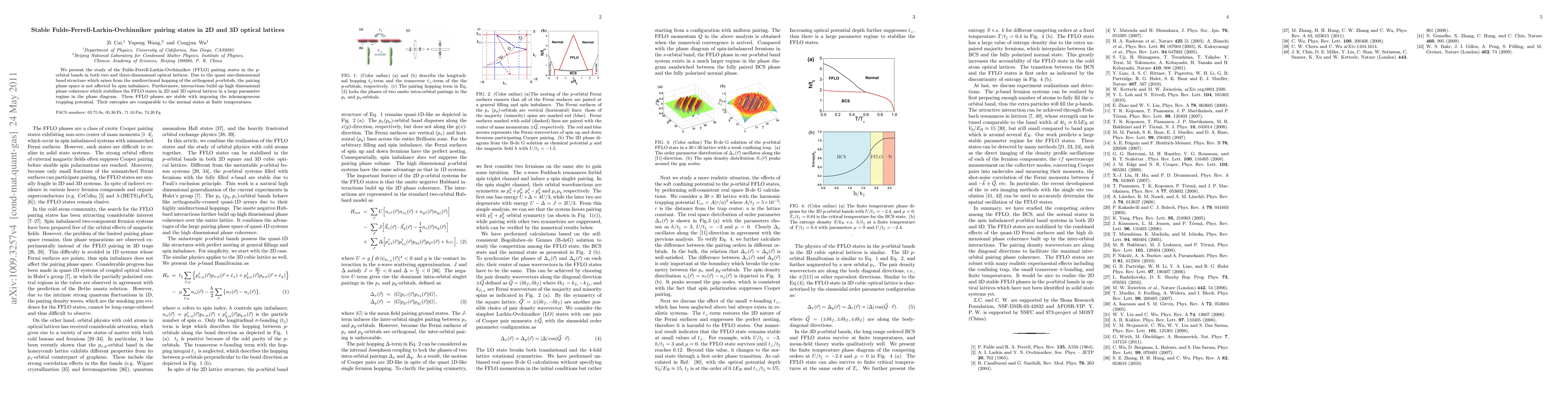 This paper investigates Fulde-Ferrell-Larkin-Ovchinnikov (FFLO) pairing states in $p$-orbital bands within 2D and 3D optical lattices, demonstrating their stability due to high dimensional phase coherence and inhomogeneous trapping potentials. The FFLO phases exhibit entropy comparable to normal states at finite temperatures.