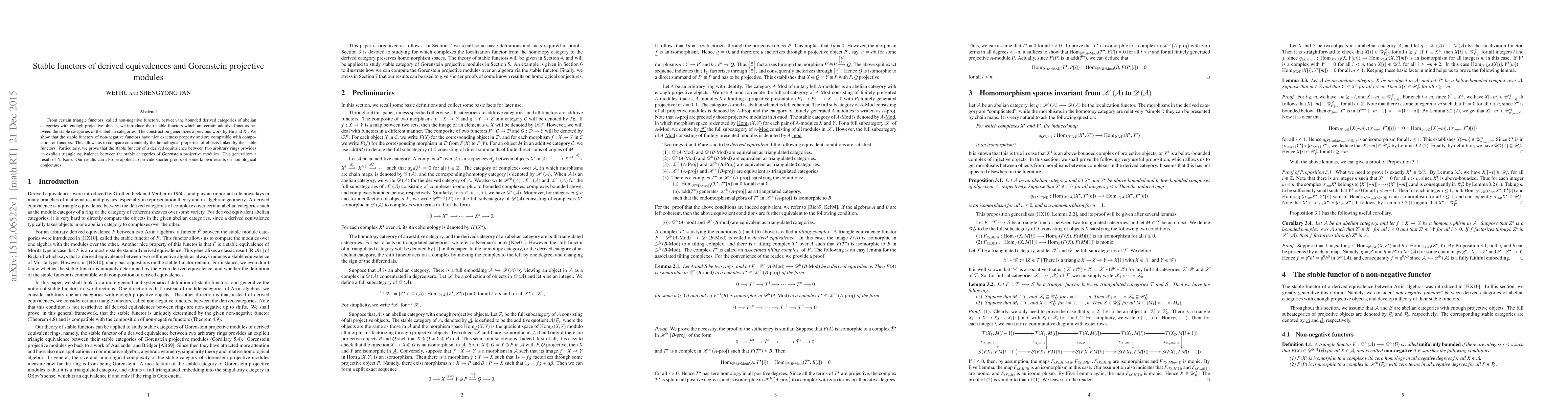 This paper introduces stable functors derived from non-negative functors between bounded derived categories, proving they maintain exactness and compatibility with composition. It demonstrates that these stable functors establish a triangle equivalence between stable categories of Gorenstein projective modules, generalizing previous work and providing shorter proofs for known homological conjectures.