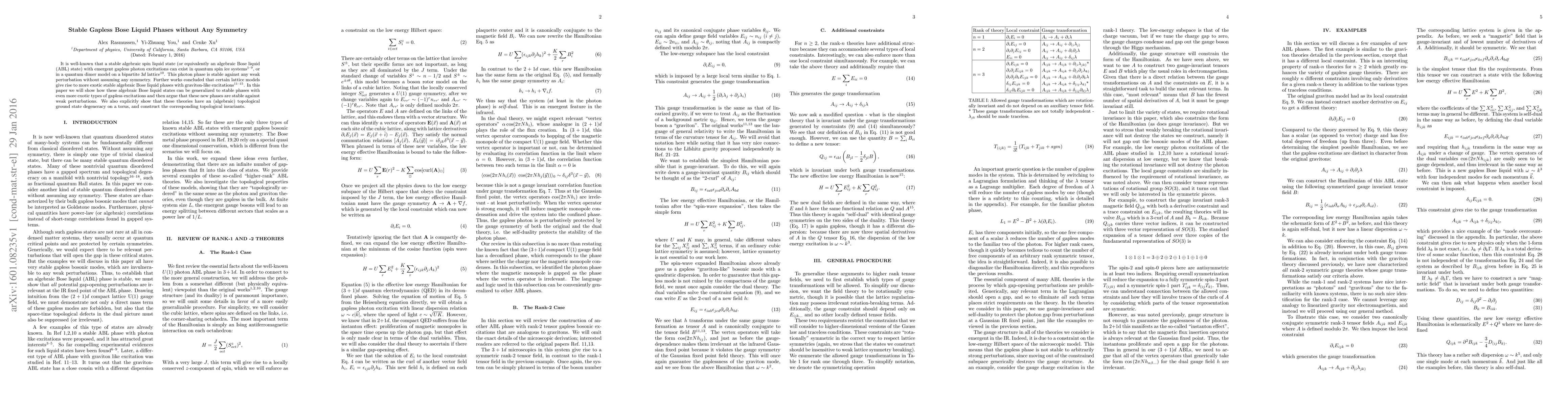 This paper explores stable gapless Bose liquid phases without relying on any symmetry, demonstrating the existence of exotic algebraic Bose liquid states with unique gapless excitations. It also establishes topological ground state degeneracy and constructs corresponding topological invariants for these phases.