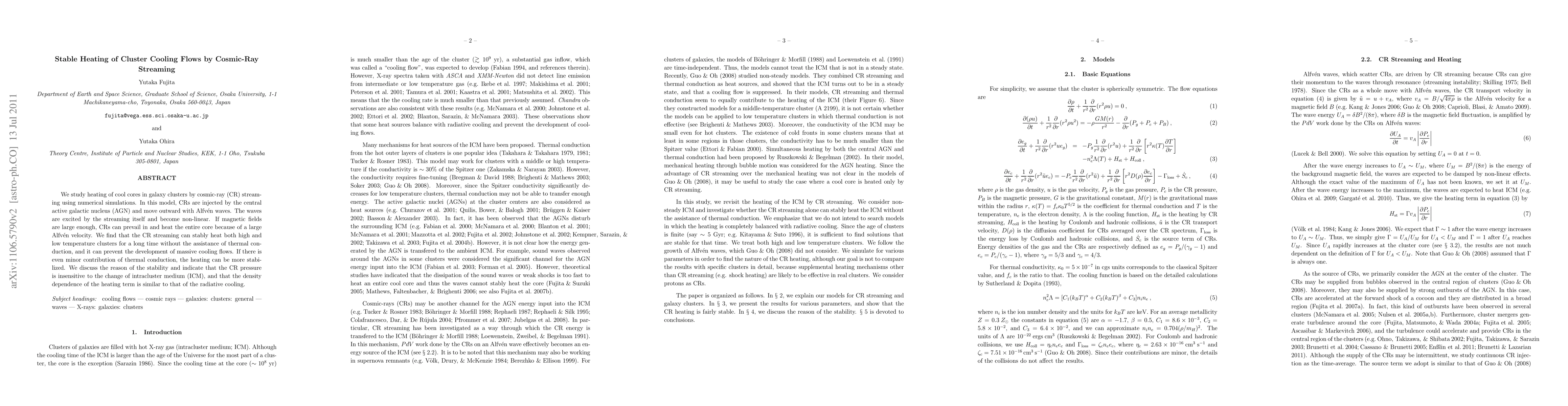 This paper explores the heating of cool cores in galaxy clusters via cosmic-ray streaming from the central active galactic nucleus, finding that it can stably heat clusters over time and prevent massive cooling flows, with stability enhanced by thermal conduction. The study highlights the insensitivity of cosmic-ray pressure to intracluster medium changes and parallels the density dependence of heating with radiative cooling.