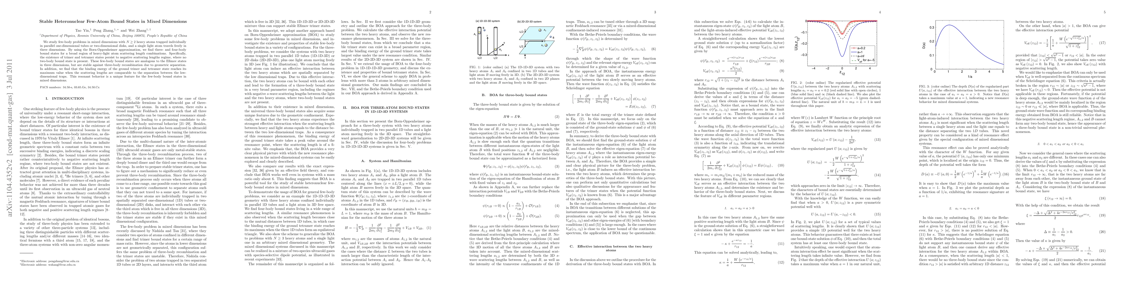 This paper investigates few-body bound states in mixed dimensional systems with heavy atoms confined in one-dimensional tubes or two-dimensional disks, and a light atom free in three dimensions. Using the Born-Oppenheimer approximation, it identifies stable trimer and tetramer states, analogous to Efimov states, even in regimes where no two-body bound states exist.