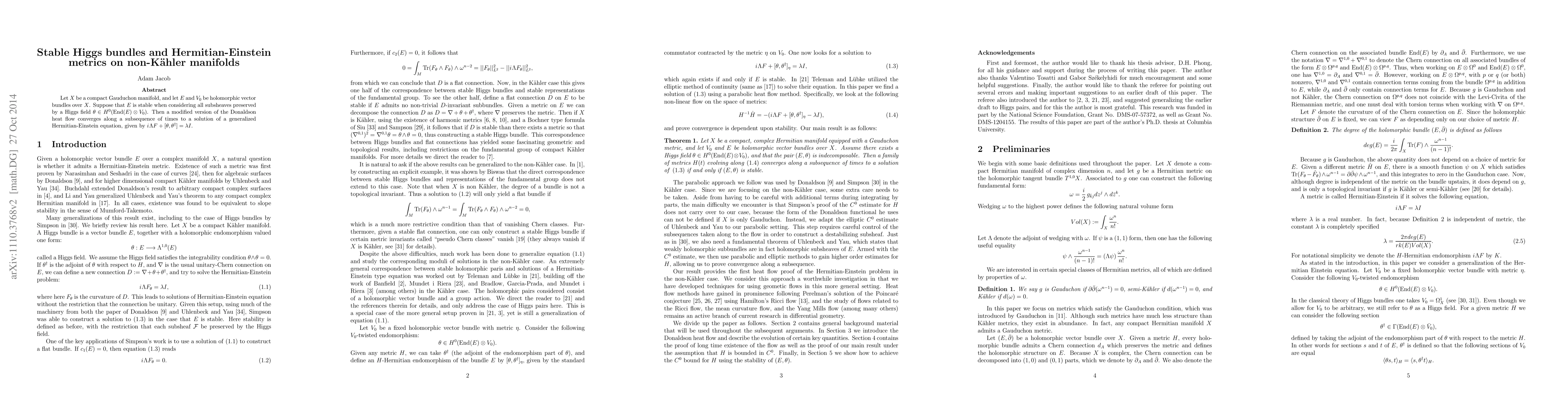 This paper studies stable Higgs bundles on compact Gauduchon manifolds and proves that a modified Donaldson heat flow converges to a solution of a generalized Hermitian-Einstein equation under certain stability conditions. The result extends the concept to non-Kähler manifolds.